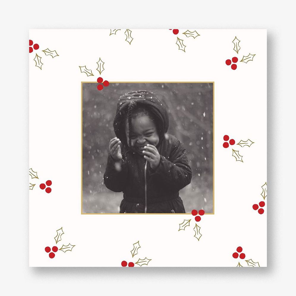 Sophisticated and minimalist holly berries pattern the front of this elegant holiday card. designed by kate spade new york for Paperless Post.