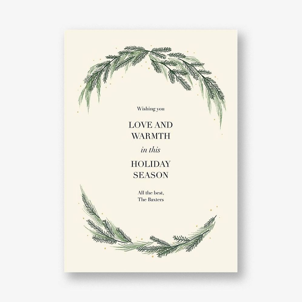 Elegant pine bows encircle your seasonal greetings on this chic and minimalist holiday card. designed by Paperless Post.