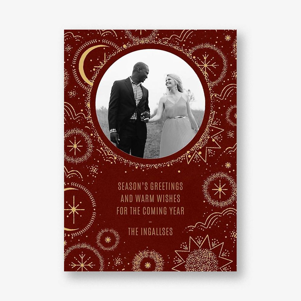 Your photograph is sure to look stellar surrounded by a wondrous cosmic design on this customizable holiday photo card from Paperless Post.