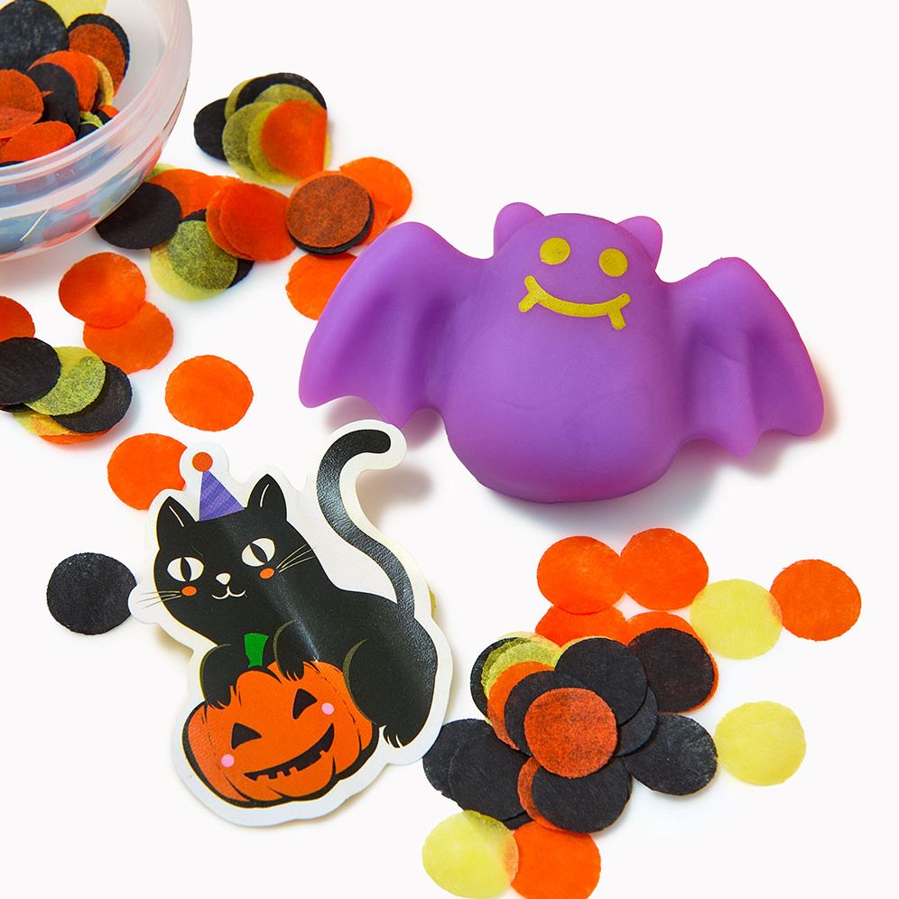 Cat and pumpkin surprise balls each include confetti. a squishy and a sticker. Pop em’ open and have some fun! Set of 4.