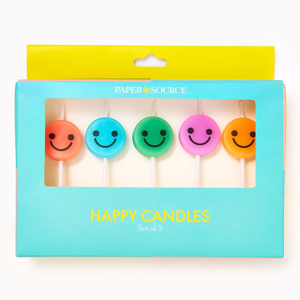 This five-pack of happy face candles is the perfect way to celebrate. birthdays. graduations or any other occasion. Great for decorating cakes or other treats. they’re a fun way to get the party started.