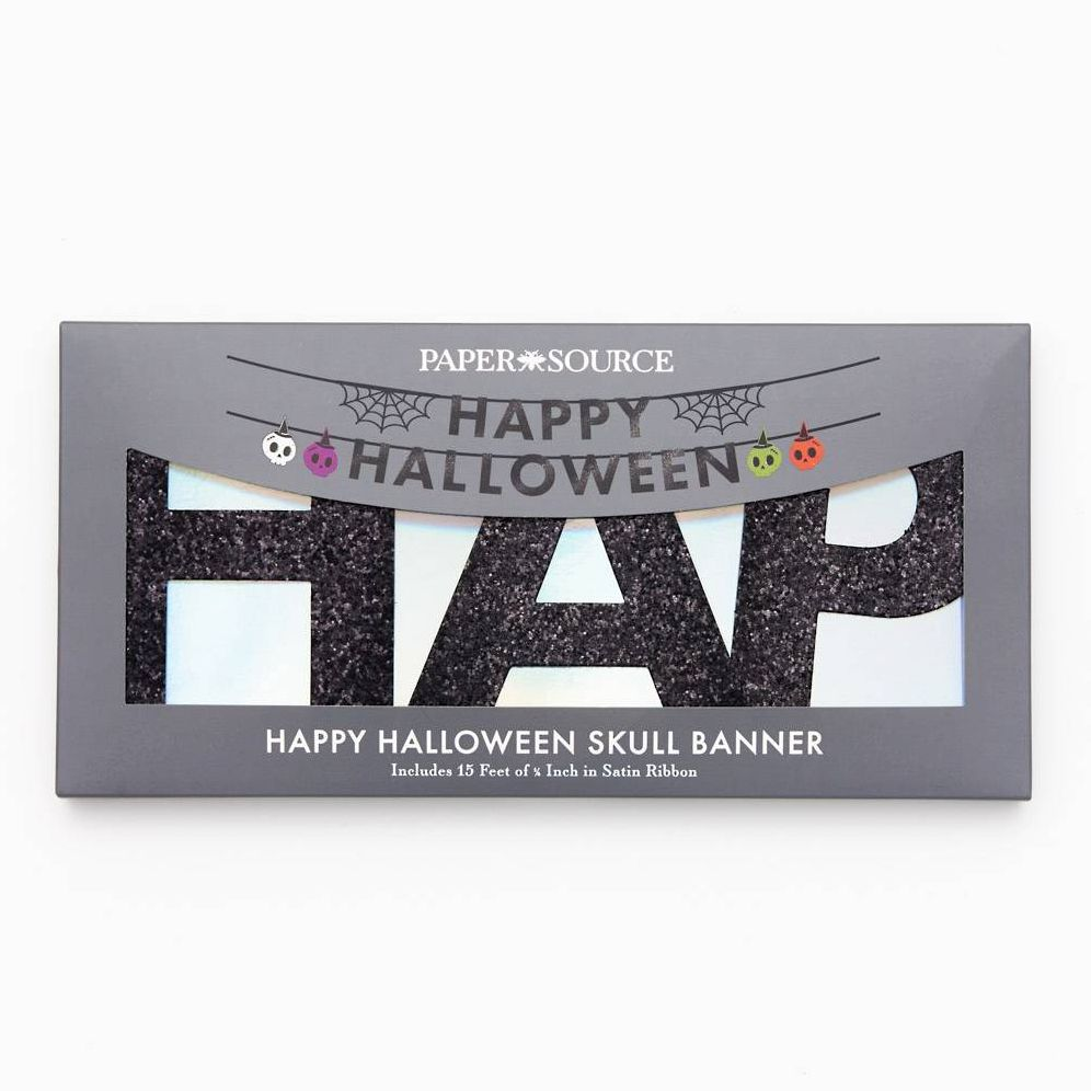 Creep it real and add a little sparkle to this spooky season with the Happy Halloween banner. This banner comes pre-strung spider webs. and colorful skulls. Simply decorate as desired. Whether you drape the banner across a table or hang it above a window. this banner will surely make the perfect backdrop! Designed by Paper Source.