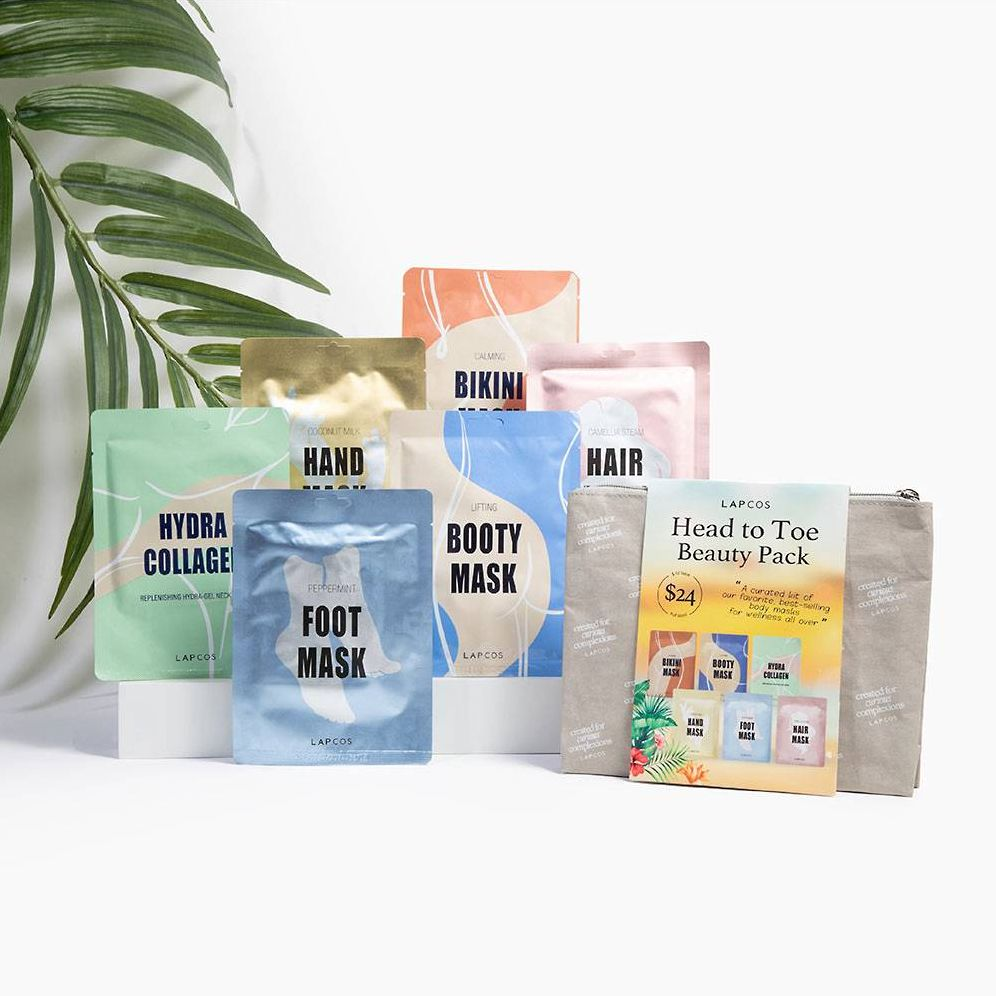PSA: skin care is for everywhere. Thankfully. this is your all-access pass to headlining skin all over ?? this Head to Toe Beauty Pack from LAPCOS. a curated kit of favorite body. face and hair masks for wellness from top to bottom. This comprehensive glow system includes our Hair. Foot. Hand. Booty. Bikini and Neck Masks to help you care for and nourish your whole self.