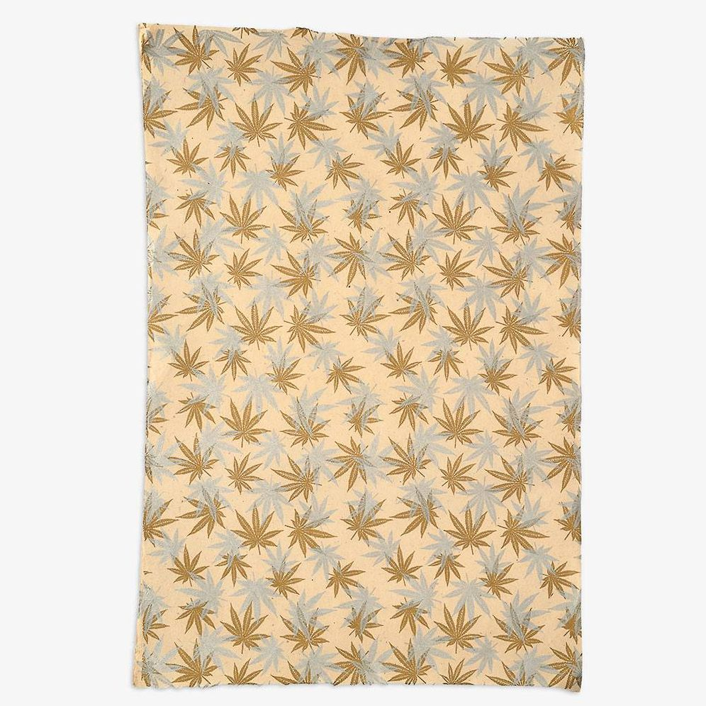 Silver and gold foil hemp leaves are printed on cream Lokta fine paper. The renewable Lokta plant’s long fibers are remarkably strong. giving Lokta paper its durability. supple feel and beautiful aesthetic. These qualities make this lovely fine paper suitable for bookbinding. gift wrapping. or card making. And because the Lokta plant is renewable. these handmade papers are truly a green choice.