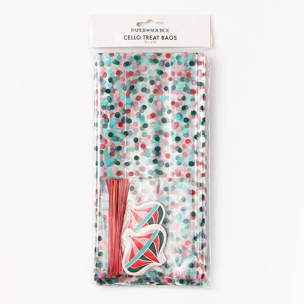 This holiday dot cello bags are perfect to put treats in for the holiday season! Set of 15.