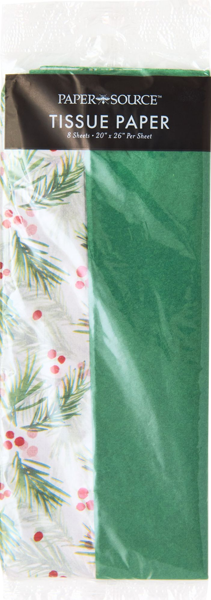 Each sheet showcases an array of festive botanical designs including holly. pine. and seasonal greenery. Perfect for adding a natural touch to your gift-wrapping and crafts. Set of 8 sheets of tissue paper.
