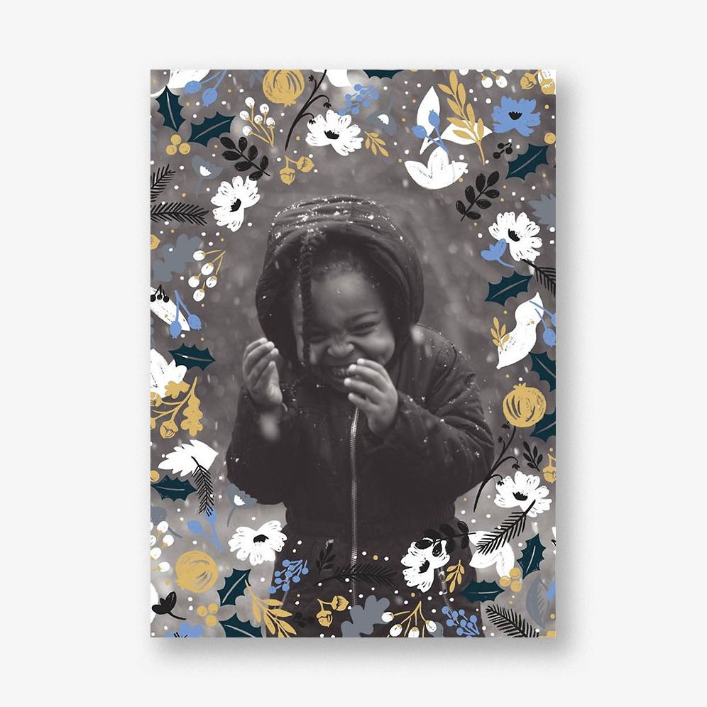 Fun holiday florals create a relaxing and warm background for your holiday greetings and photo.