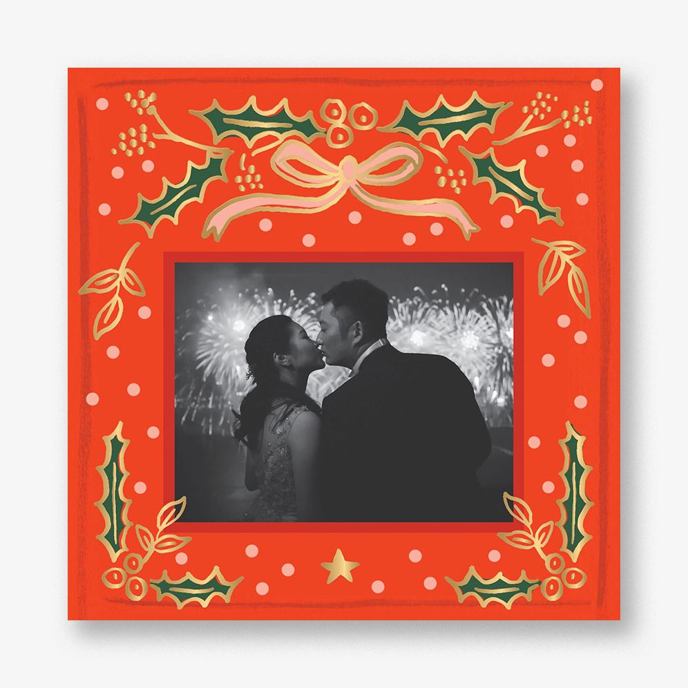 Luxe foil accents on a bright red background create holiday cheer on this design from Rifle Paper Co. for Paperless Post. Printed on Mohawk ultra white. 120 lb. card stock that is soft to the touch and matches our superfine white envelopes. Paper is FSC certified and made using wind power.