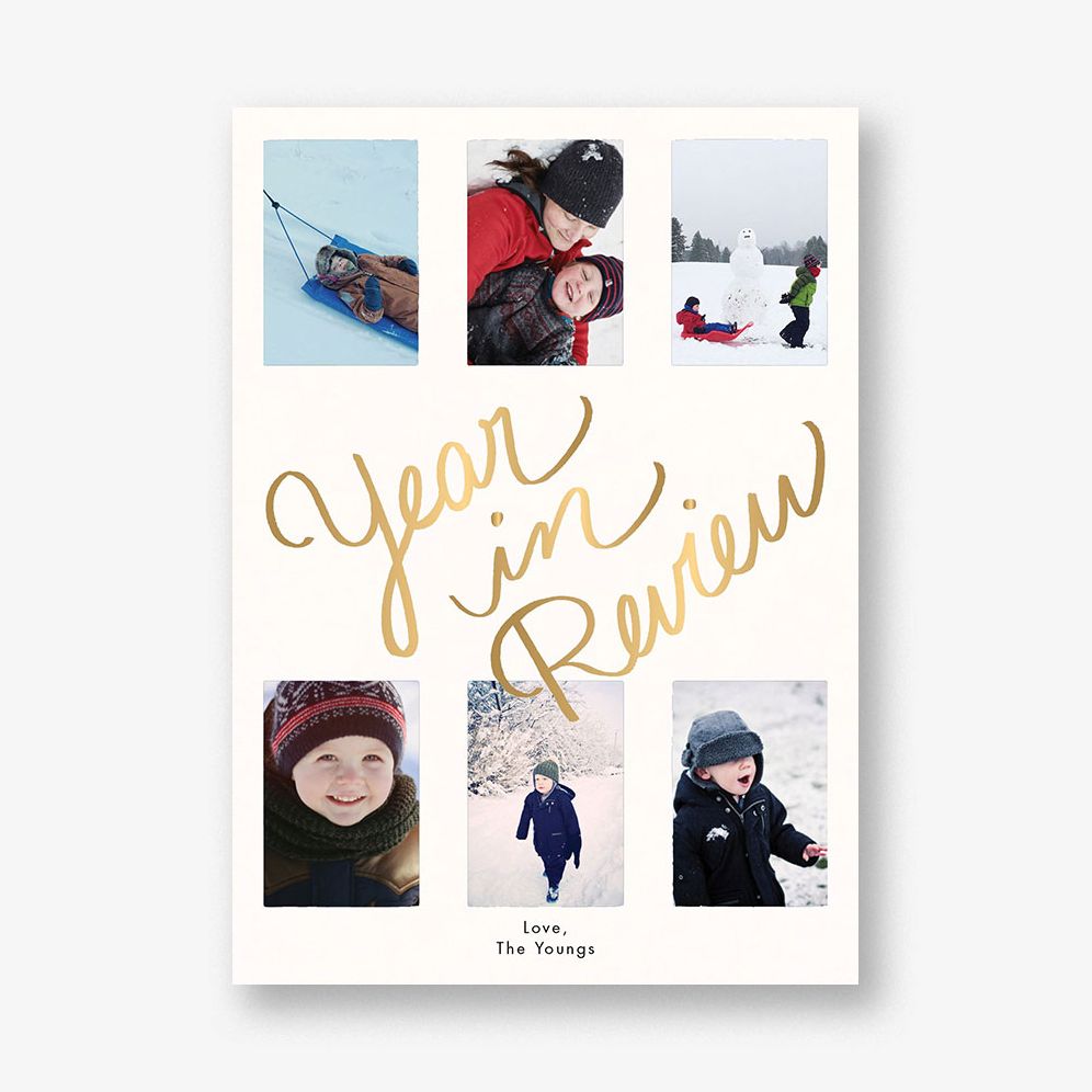 A clean design with gorgeous foil by Paperless Post. Place all your photos on the front with plenty of room to add your message on the back. Printed on Mohawk ultra white. 120 lb. card stock that is soft to the touch and matches our superfine white envelopes. Paper is FSC certified and made using wind power.