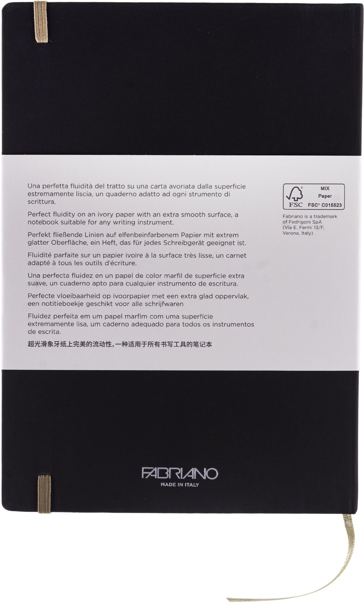 Ideal for all writing instruments. The Journals feature a matching elastic band closure. a textile bookmark and a gusseted paper pocket. The belly band identifies the range and describes the product in eight different languages.