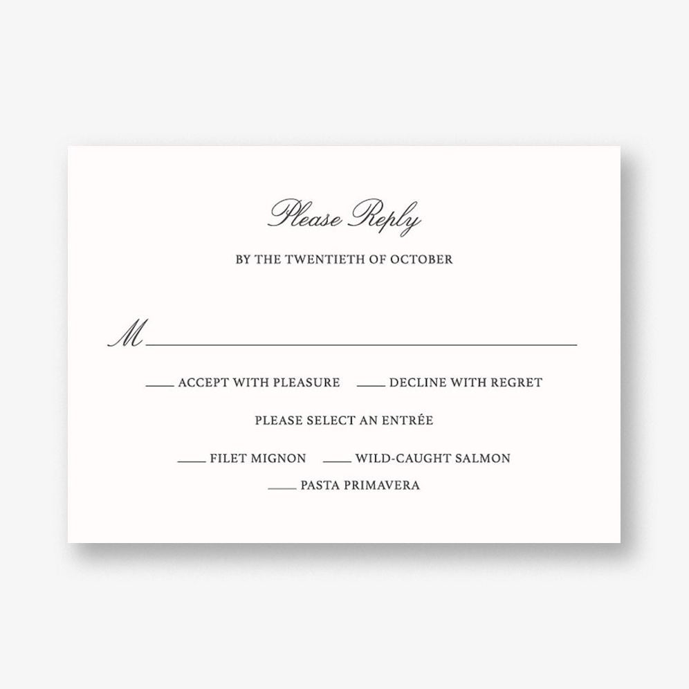 There’s something so incredibly romantic about delicate cherry blossoms. Set the mood with this wedding response card featuring an illustration of Japanese cherry blossoms. Printed on Mohawk superfine white 100 lb. card stock that is soft to the touch and matches our superfine white envelopes. Paper is FSC certified and made using wind power.