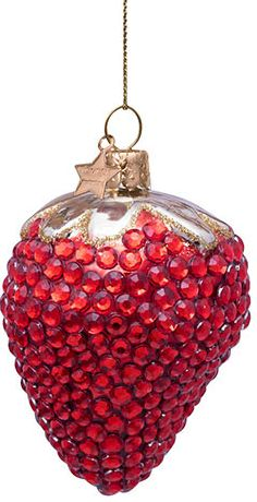 Festive Strawberry Christmas ornament is made from glass. mouth blown. hand painted and decorated with the greatest care.