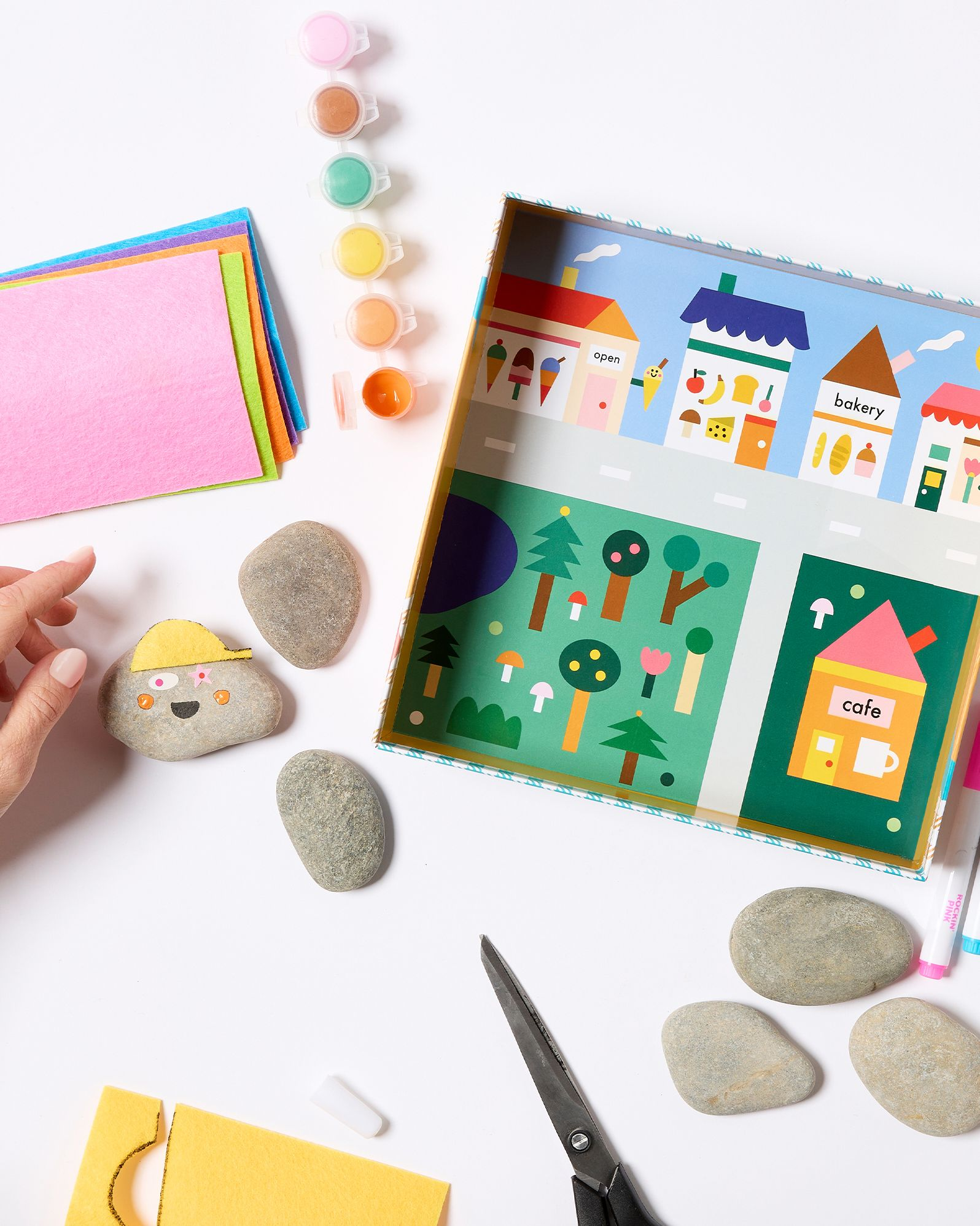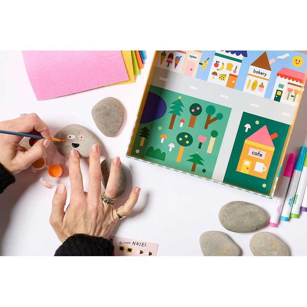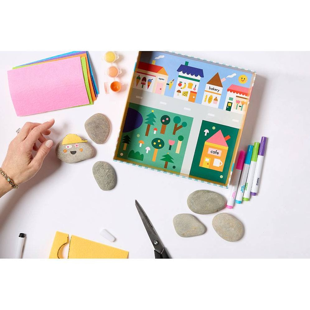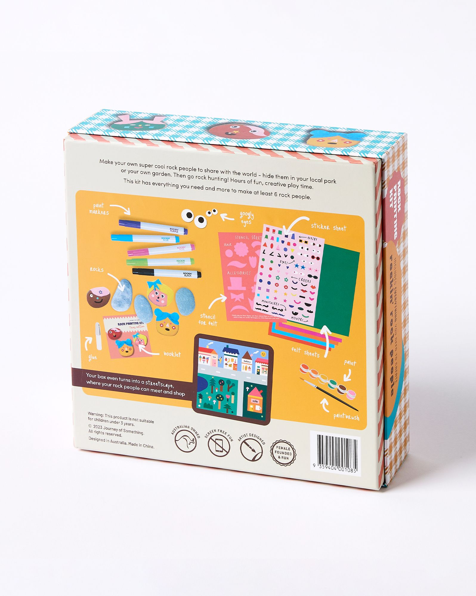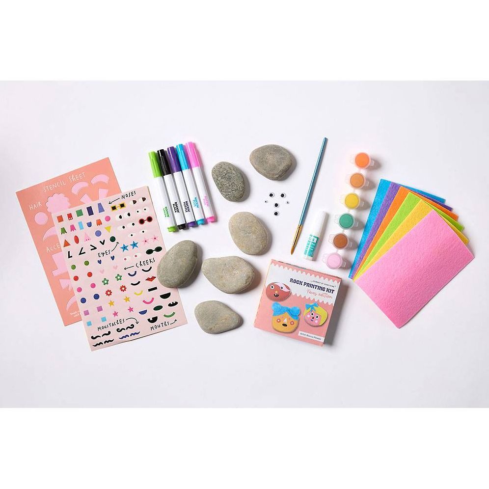 Make your own super cool rock people to share- hide them in the park or your garden. then go rock hunting. Hours of fun creative play time. Rock Painting Kit Includes: 6 x Rocks; 5 x Paint Markers; 1 x Sticker Sheet ; 1 x Stencil Sheet; 6 x Felt Sheets in Various Colours; 6 x Pots of Paint; 1 x Paint brush; 1 x Glue 2 x Sets of Googly Eyes . Inspirational Booklet