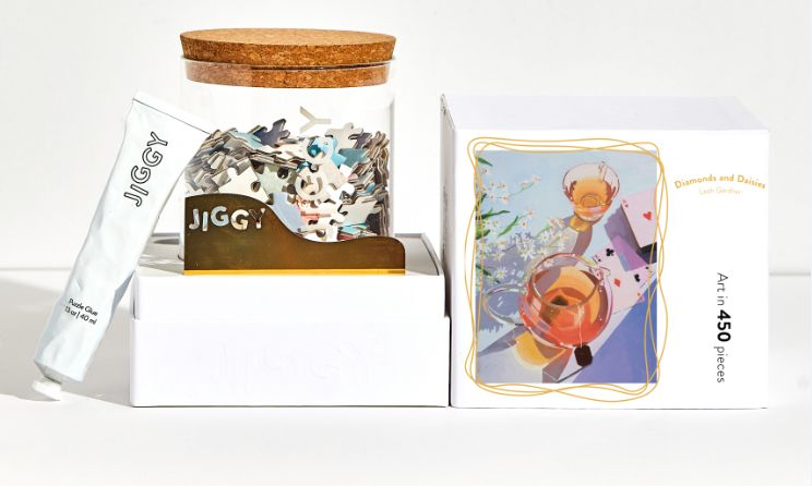 JIGGY is a female-founded puzzle company that’s reinventing the humble jigsaw. Each puzzle features art by an emerging female artist (who gets a % of every sale). comes in a reusable glass jar and includes specialty puzzle glue and glue applicator tool to preserve and frame your puzzle! JIGGY puzzles are art – in pieces. Leah Gardner. the artist behind this design. is a self-taught painter who lives and works in Chicago. Illinois. In March of 2020. she picked up painting as a distraction from what was unfolding around the world. After a few months of fiddling around. accumulating a stack of terrible paintings. and learning from many mistakes. she realized she was developing a knack for working with oils and began to sell her work. Since January 2021. Leah has painted full-time. selling originals and prints on her website and through social media. Size: 450 pieces Puzzle dimensions: 18 x 14 inches Box dimensions: 5.6 x 5.6 x 6.4 inches