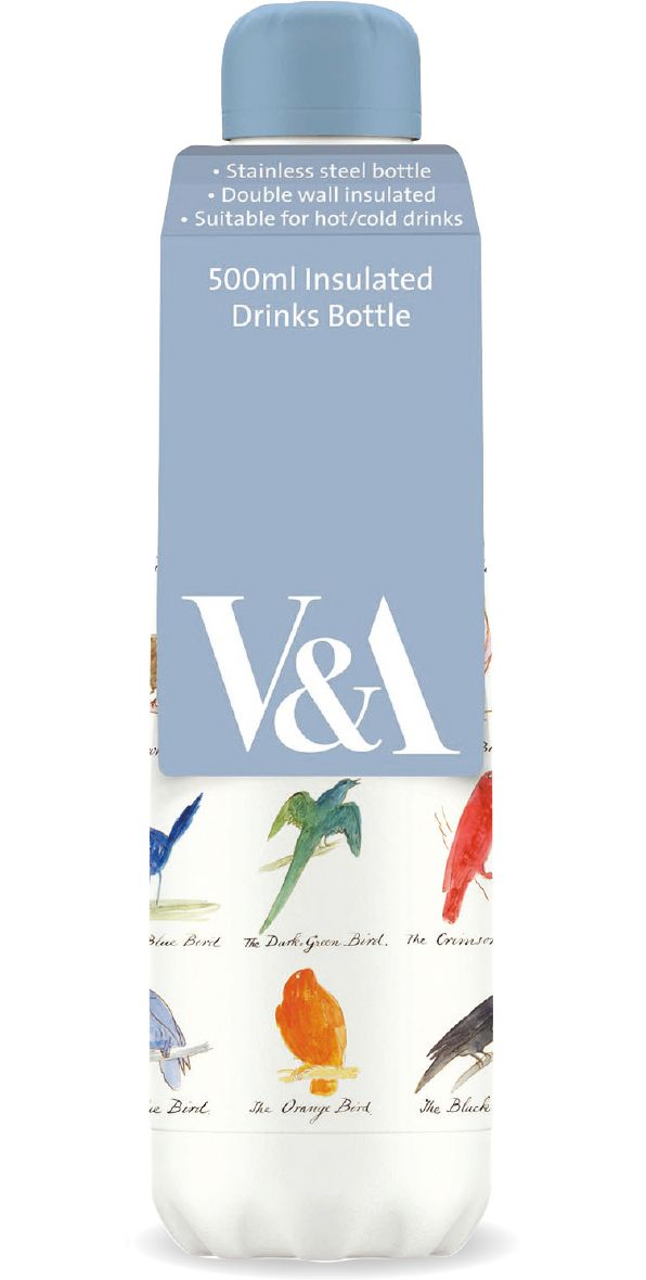 Edward Lear’s whimsical birds print upgrades this drink bottle from utilitarian to playfully practical. The stainless steel bottle is double wall insulated. has a secure-seal screw top with silicone seal. and holds 17 oz. of liquid hot (12 hrs) or cold (24 hrs).