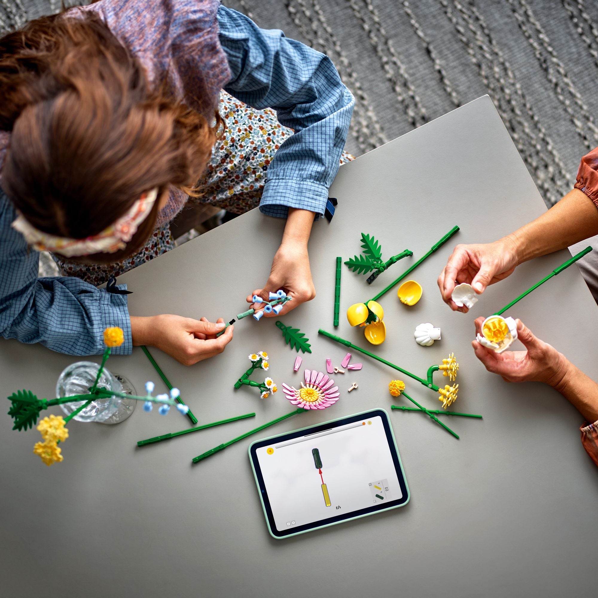 Bring sunshine into your home with the LEGO? Botanicals Petite Sunny Bouquet building set. Get creative while building 7 types of LEGO flowers in pastel shades. including bluebells. a pink gerbera and Billy buttons. before arranging them into a petite bouquet that you can display as dopamine decor. And with the LEGO Builder app. you can have fun building together with friends and family.