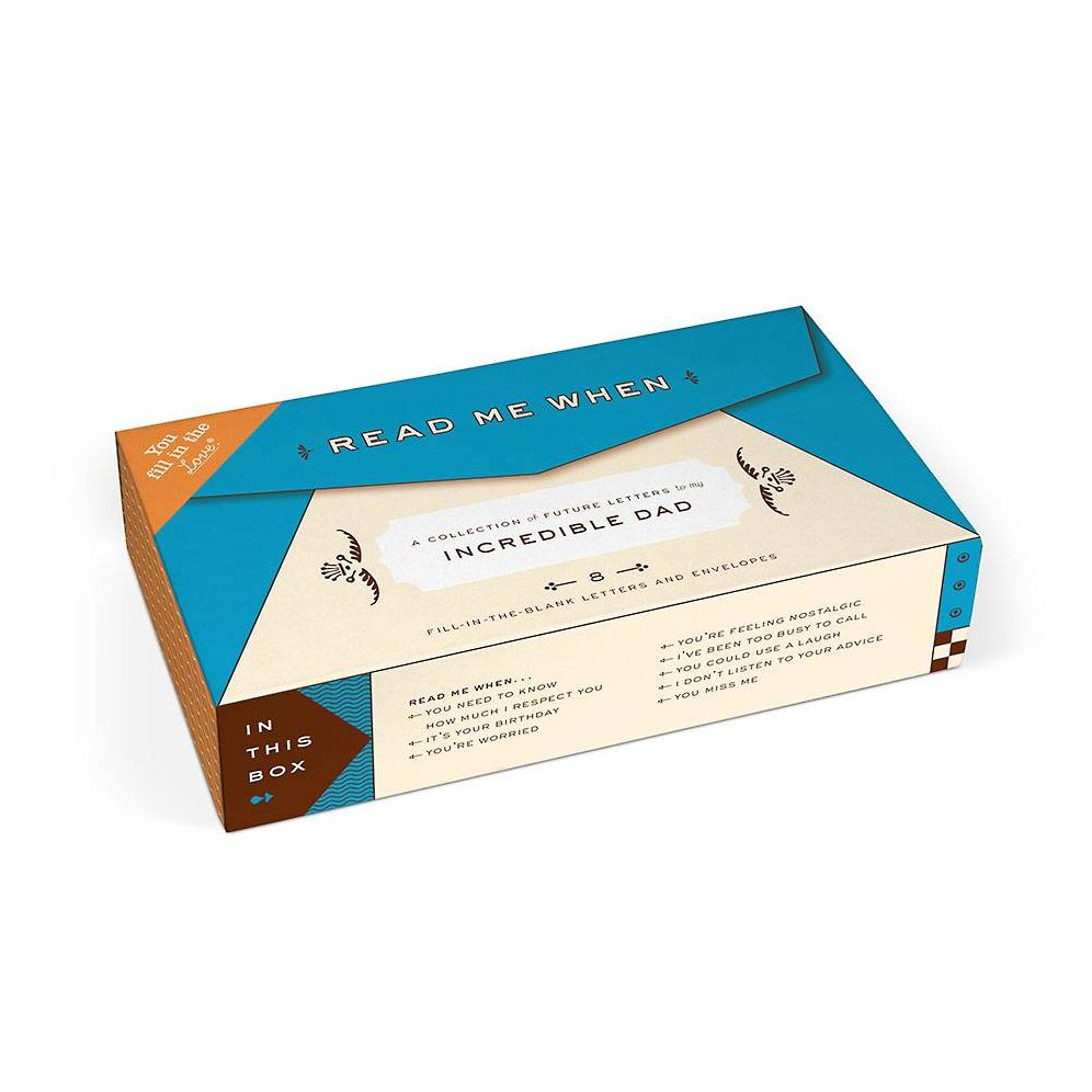 Create a treasure trove of fill-in letters for your awesome dad! Simply fill in the blanks on eight situation-specific letters. seal them in their corresponding envelopes. and present the whole package in its keepsake box. The letters can then be opened at just the right moment in the future to provide your personal thoughts and encouragement.