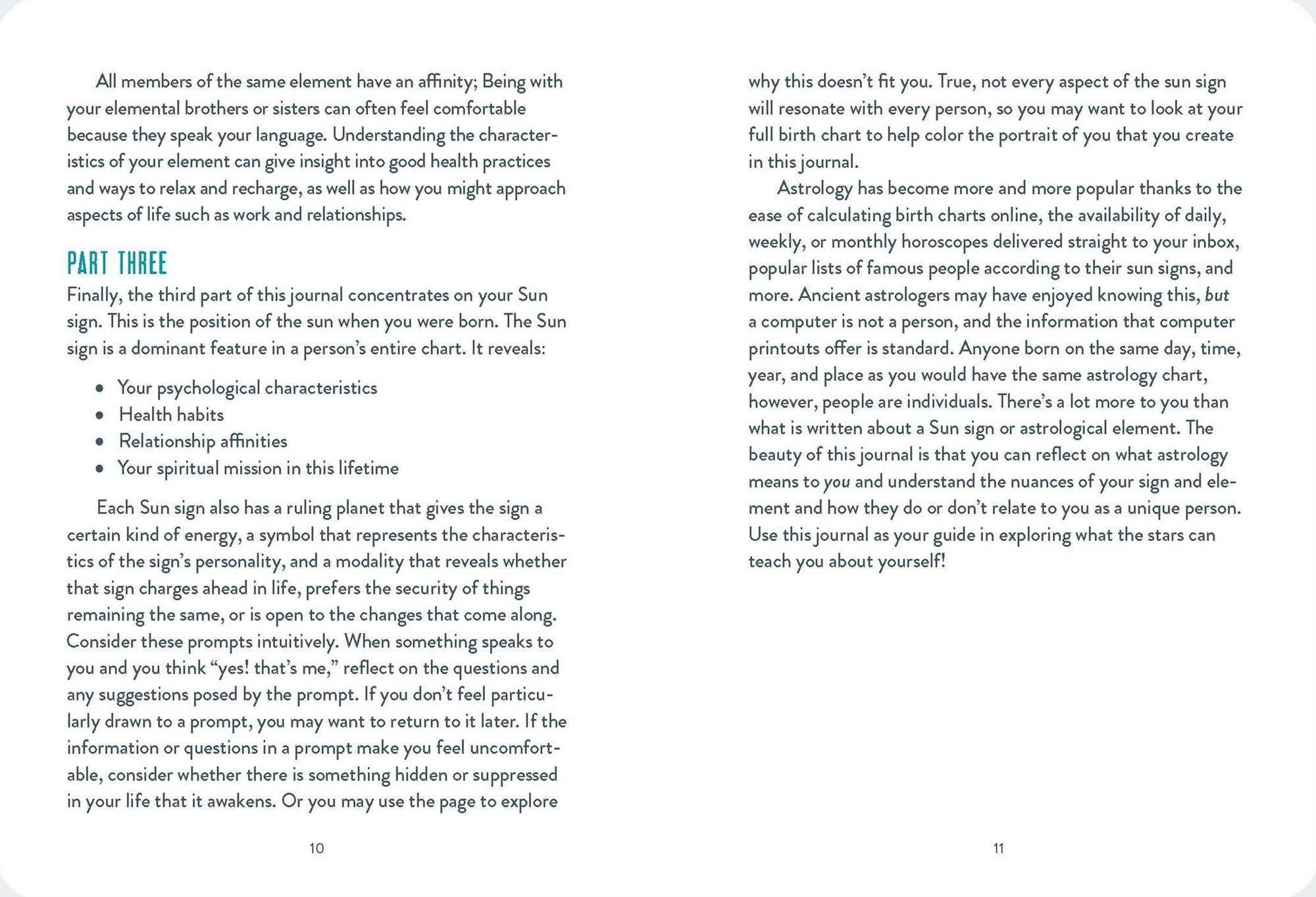 Self-reflection can be an important part of a successful astrological practice. and this guided journal is here to help you take that next step to really consider what the stars say about you. First. get a quick refresher on your sign??your strengths and weaknesses and main qualities and goals. Then dive into over 75 questions that are perfectly tailored to help you gain deeper insight into what you really are. From general astrology prompts to questions that touch on your element to prompts that speak to your unique sun sign. there’s plenty to explore and uncover.