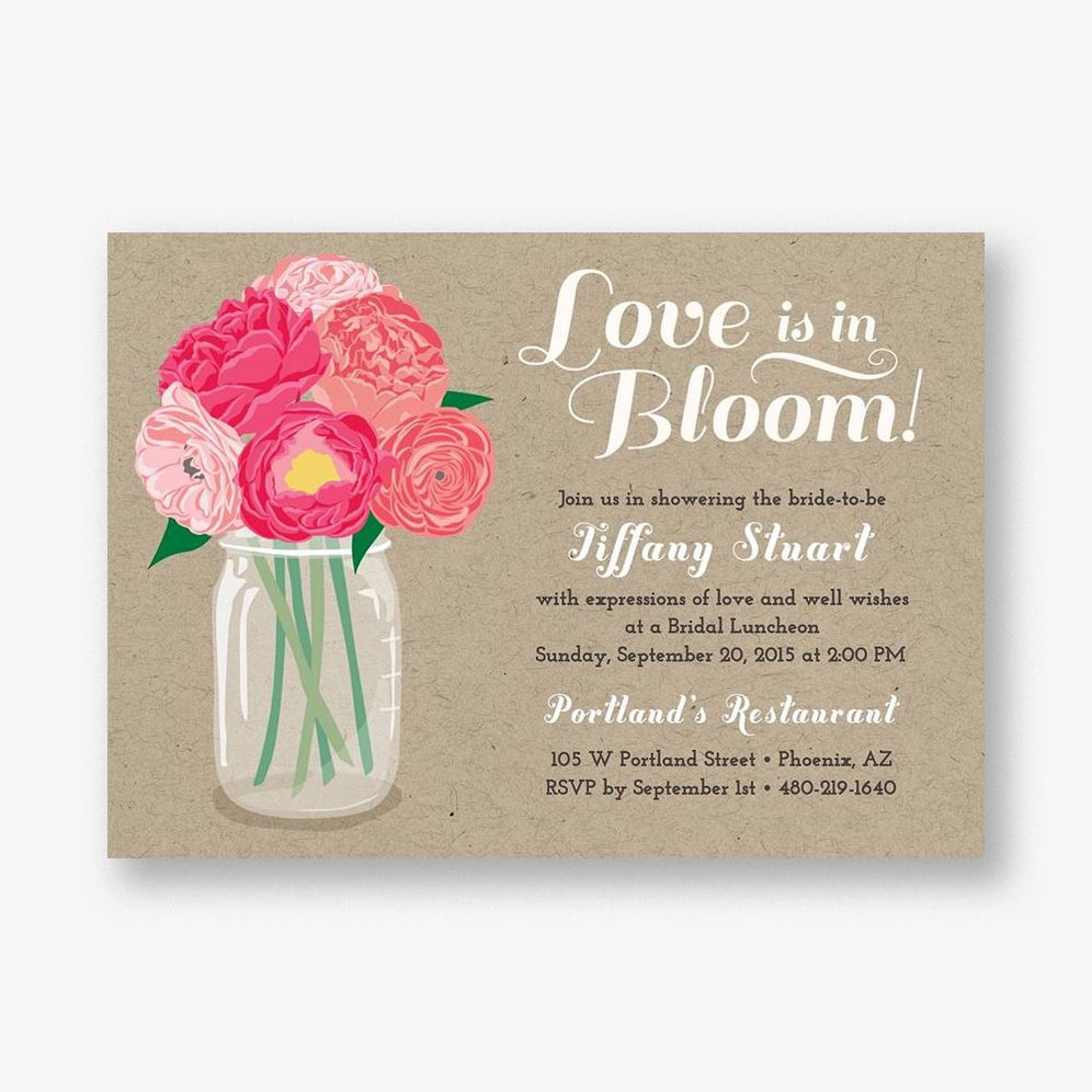 A vibrant bouquet in fresh pink and coral flowers sets the tone for a marvelous bridal shower in honor of the beautiful bride-to-be. Printed on white 130 lb cover paper with a tactile vellum finish. 100% post-consumer waste. FSC certified.