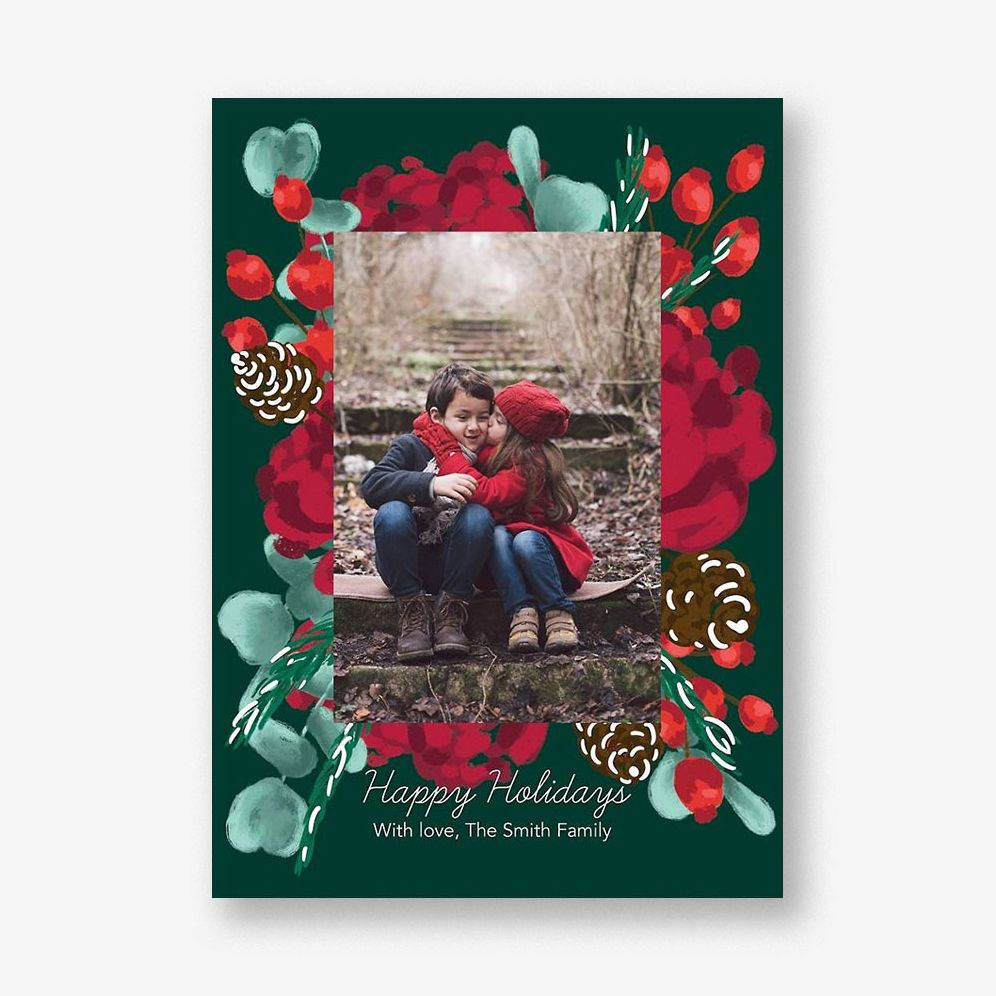 Deck the halls with the this merry card. ‘Tis the season to show off your picture-perfect blooms! Proudly designed by Paper Source. Printed on Mohawk 120.0 lb Superfine Ultra White. This paper is FSC certified. with 30% post consumer recycled content. and made using wind power. Please note: Due to the matte finish of our paper. photos may print slightly darker than they appear on your screen.