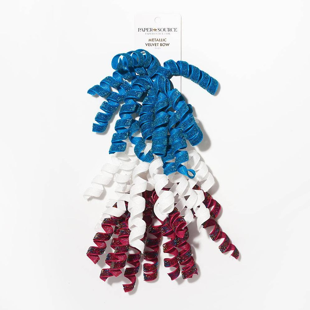 The perfect set of 3 curly bows to accessorize any gift wrapping job! These 3 velvet bows have just the right amount of sparkle!