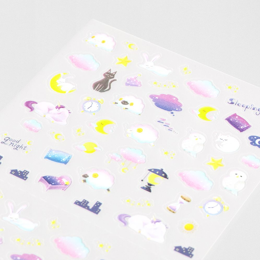 These peelable stickers are a fun way to decorate the margins . dates or line of your diary. planner. The design is based on the theme of sleep. dreams. and night. making it the perfect sticker to record your sleep.