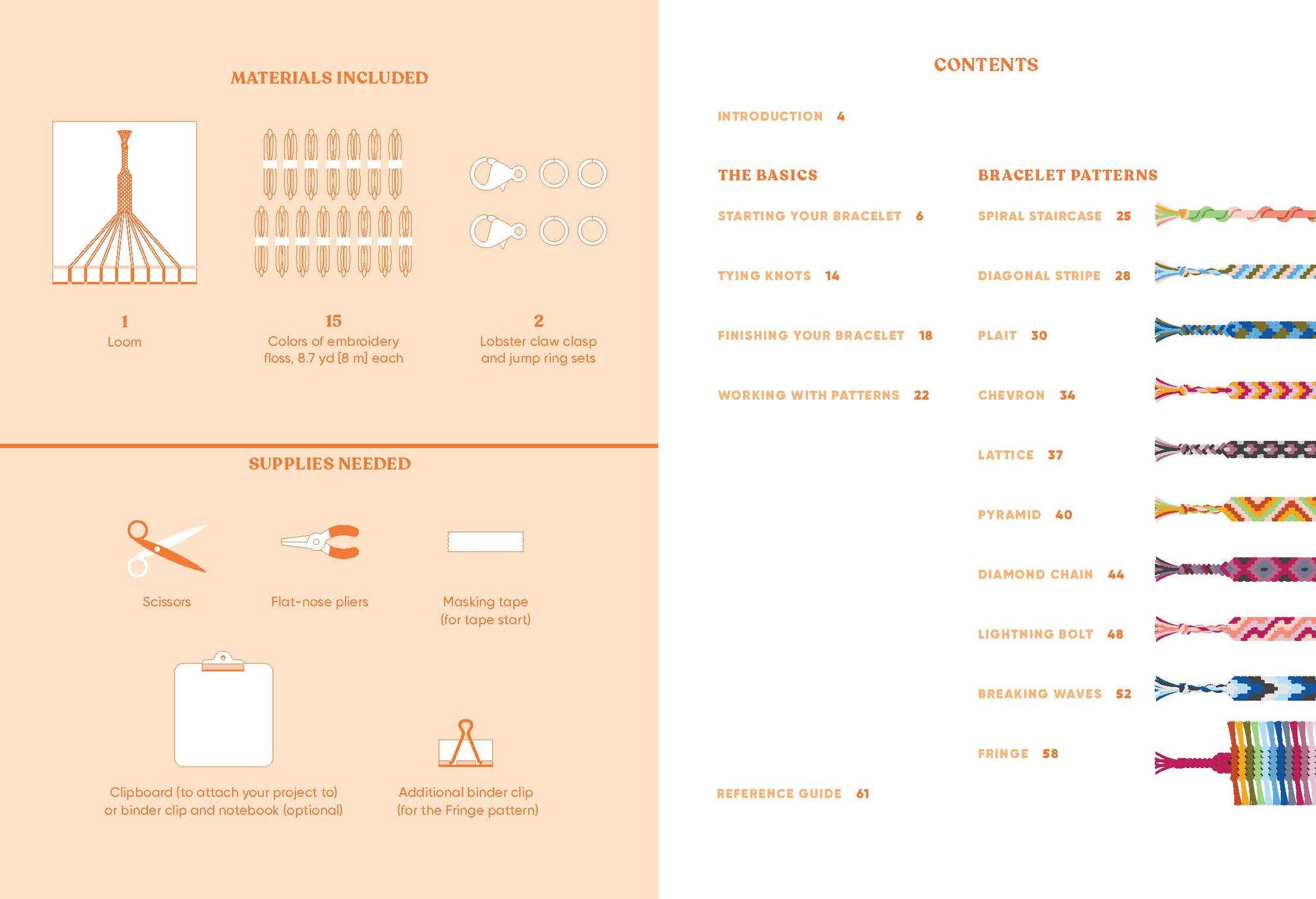 Through repetitive motions that busy the hands and calm the mind. string crafts are a great way to unplug and slow down. This kit includes 15 different colors of embroidery floss. two sets of clasps. and an illustrated instructional booklet with knot-tying basics. ten step-by-step bracelet patterns (from easier designs like Spiral Staircase to the more advanced Breaking Waves)??plus tips and tricks to customize and elevate your bracelets. With this handy kit. you can simultaneously soothe anxious thoughts and create unique bracelets cool enough to adorn any wrist. whether it’s your friend’s or your own!?(Kit includes enough floss to create 20+ bracelets.)