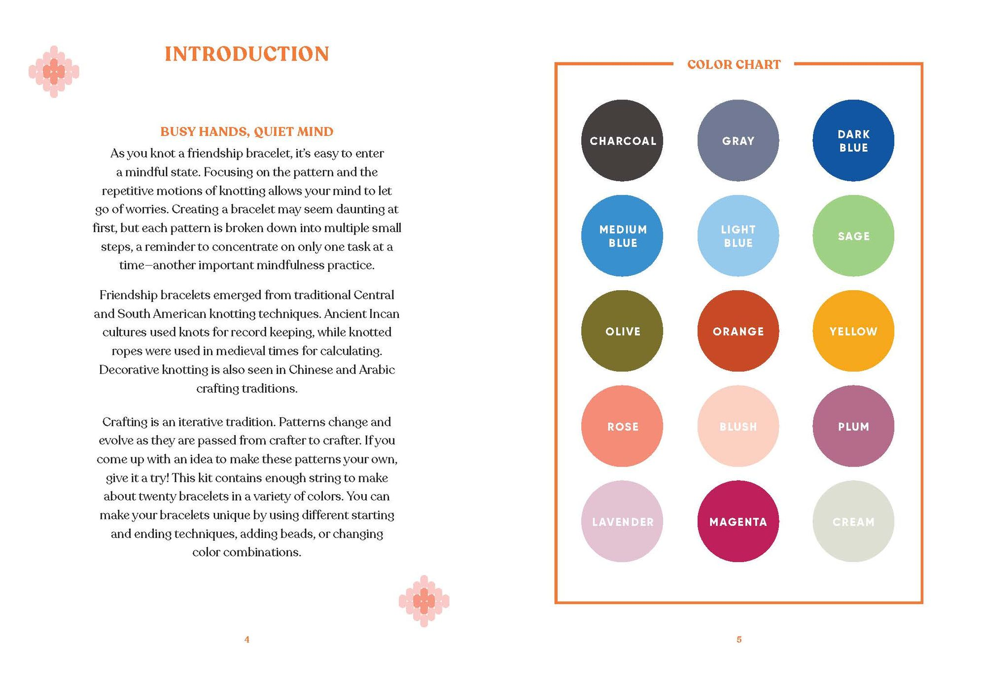 FUN TWIST ON AN OLD FAVORITE: Reminisce on those long summer days spent making friendship bracelets at school and camp. With its emphasis on mindfulness and its fresh. eye-catching designs. this how-to kit offers an elevated. more adult-friendly take on the classic craft.?