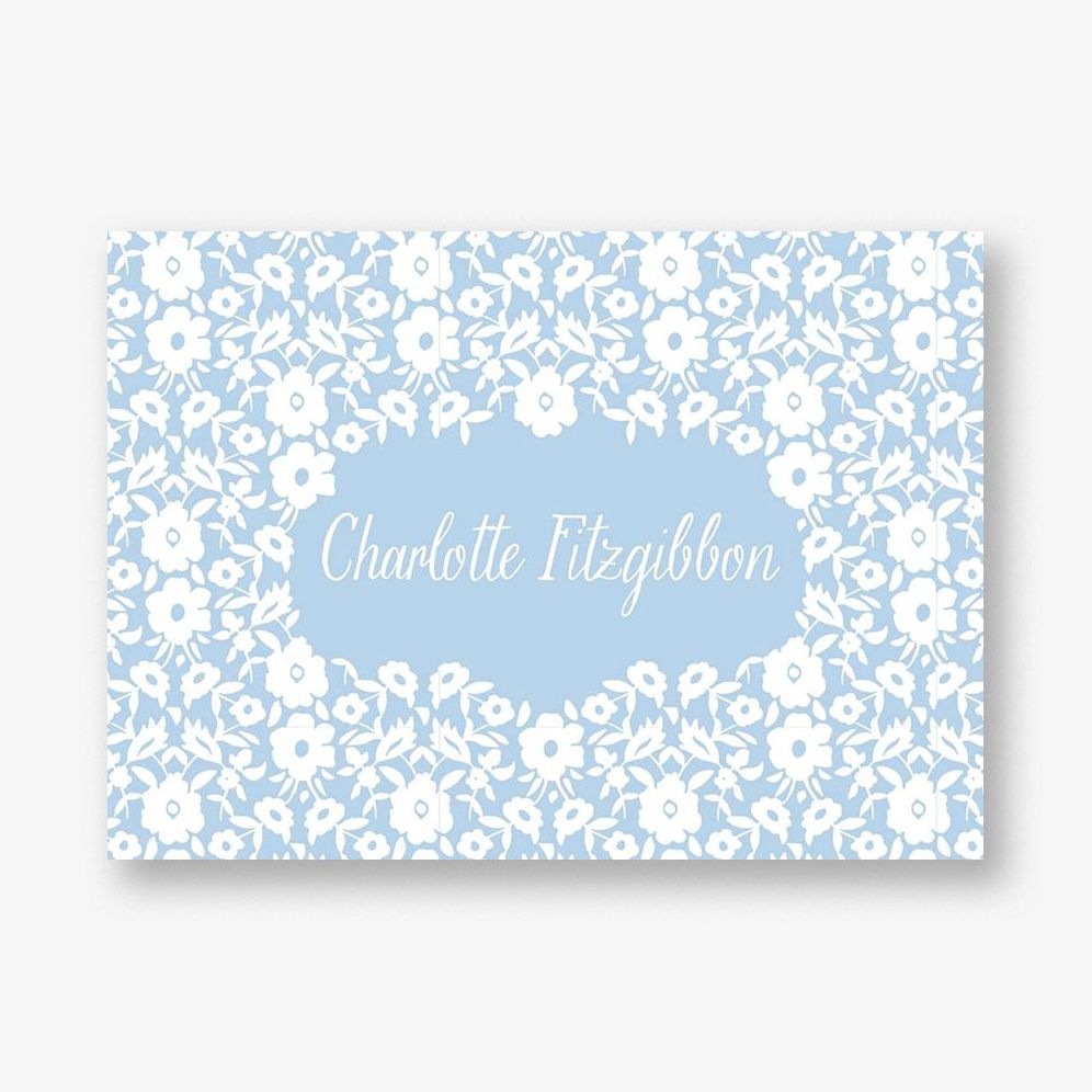 Choose from five different colors for this sweet stationery. with a pretty floral design surrounding your name. Designed right here at Paper Source.