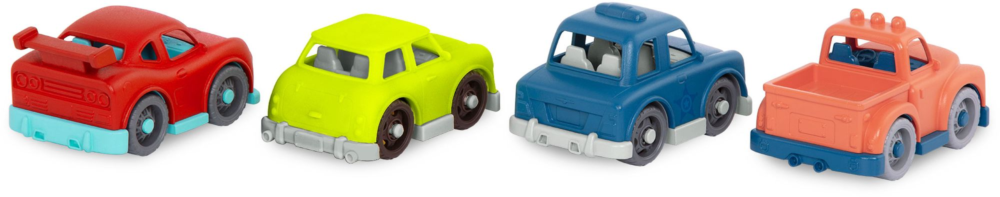 4-Piece Set: Includes a race car. hatchback. pick-up truck. and police car!