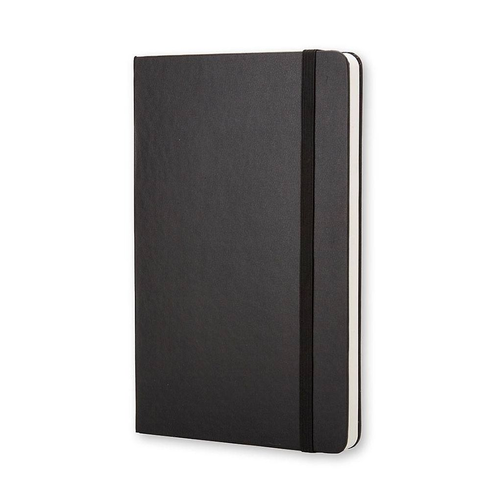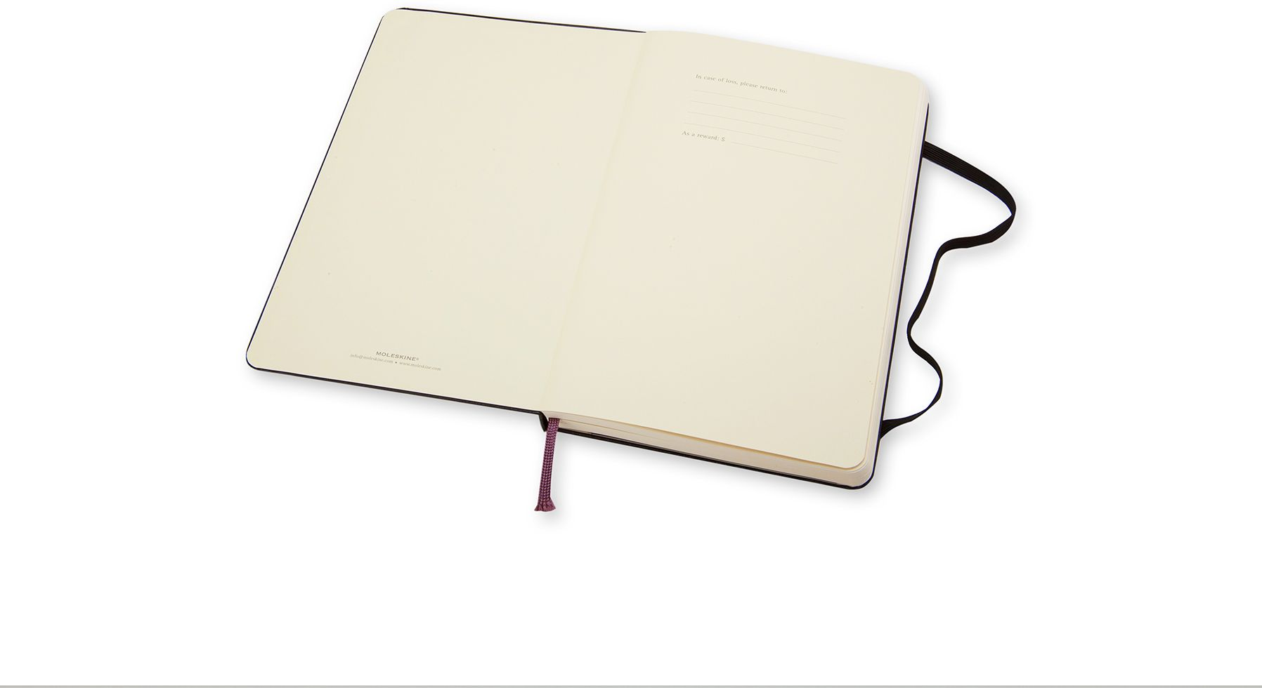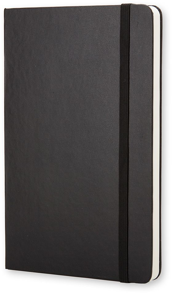 This basic. yet classic Large Plain notebook is one of the best-selling Moleskine notebooks. This reliable travel companion. perfect for sketches. thoughts and passing notes. has a cardboard bound cover with rounded corners. acid free paper. a bookmark. an elastic closure and an expandable inner pocket that contains the Moleskine history.