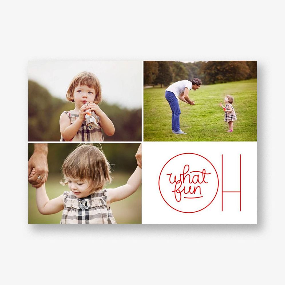The holiday season is always filled with fun! Make it even more delightful with this holiday photo card by Paperless Post. Feature 3 of your favorite personal photos. This card also reads Oh what fun in the bottom corner in adorable font.