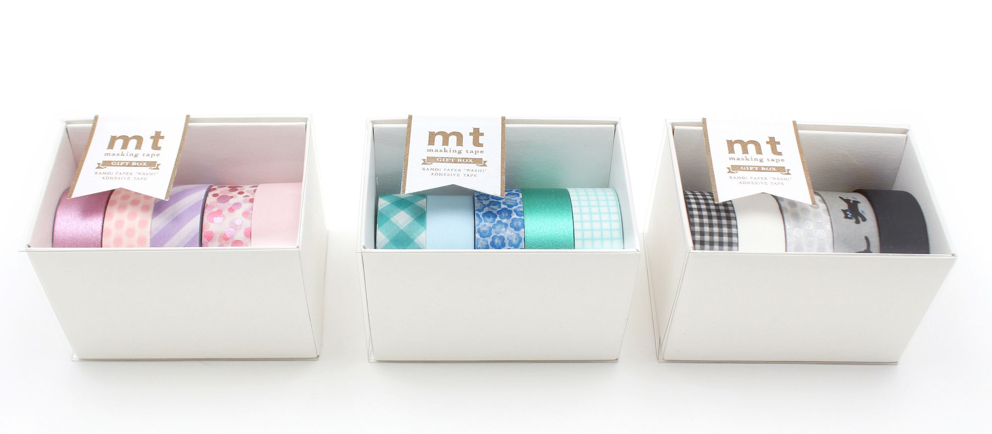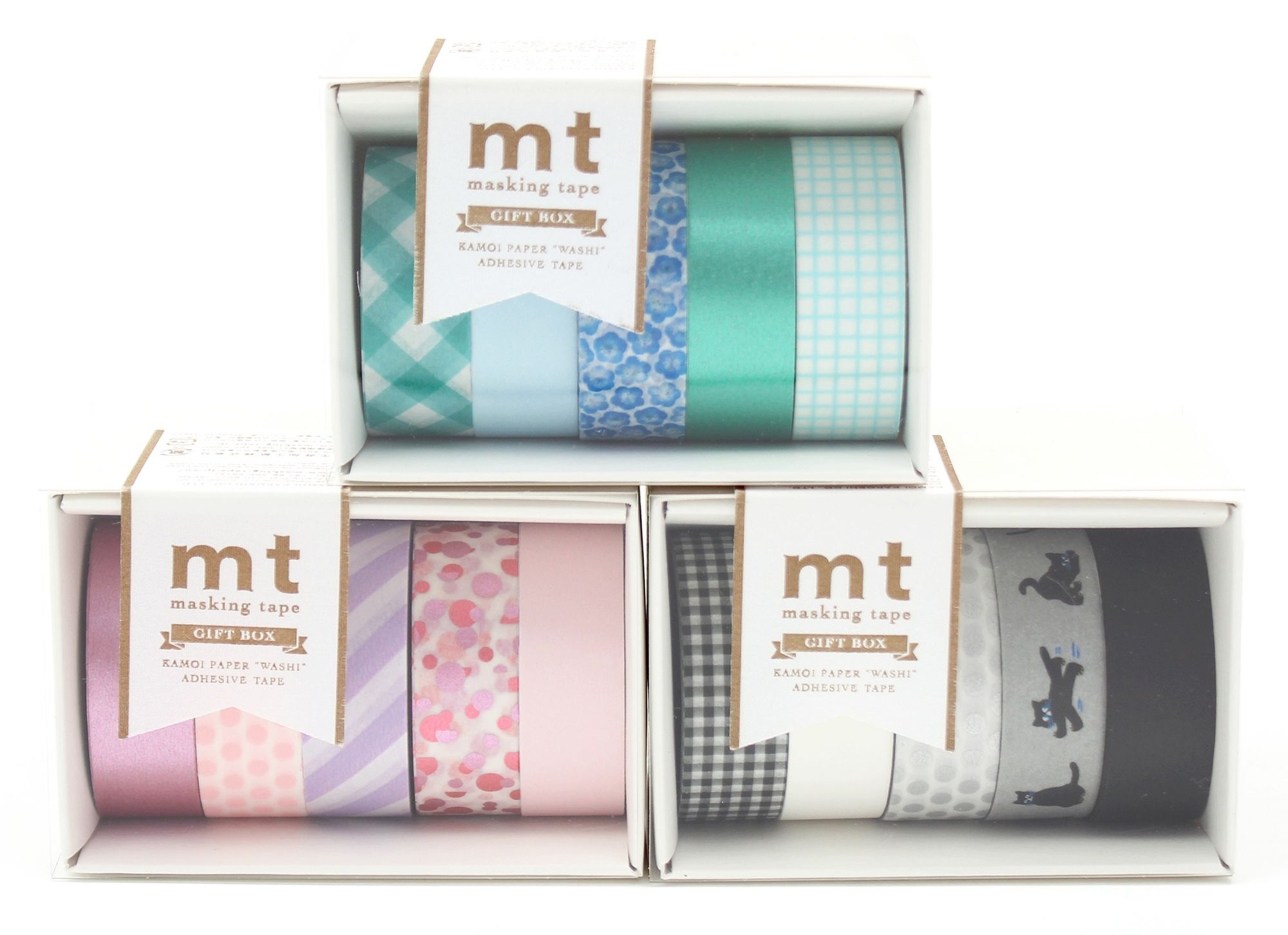 MT Masking Tape set. Includes 5 Kamoi paper washi adhesive tape in complimentary shades of blue and blue themed patterns