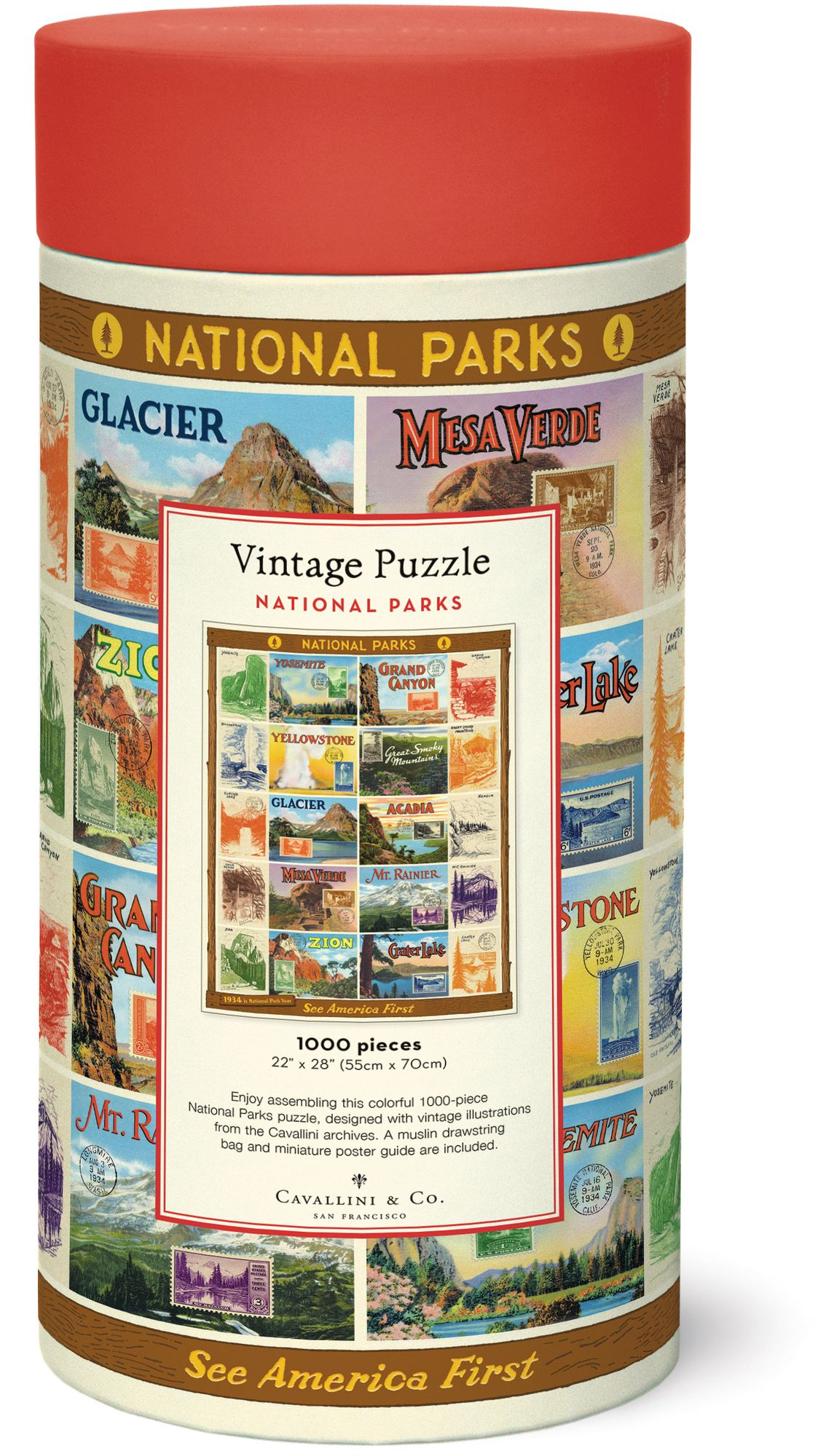 Fun and colorful 1.000 piece puzzle. 22 x 28 (55cm x 70cm) 1.000 piece puzzle Packaged in a 10 tube. with handsewn muslin bag inside Featuring images from the Cavallini archives