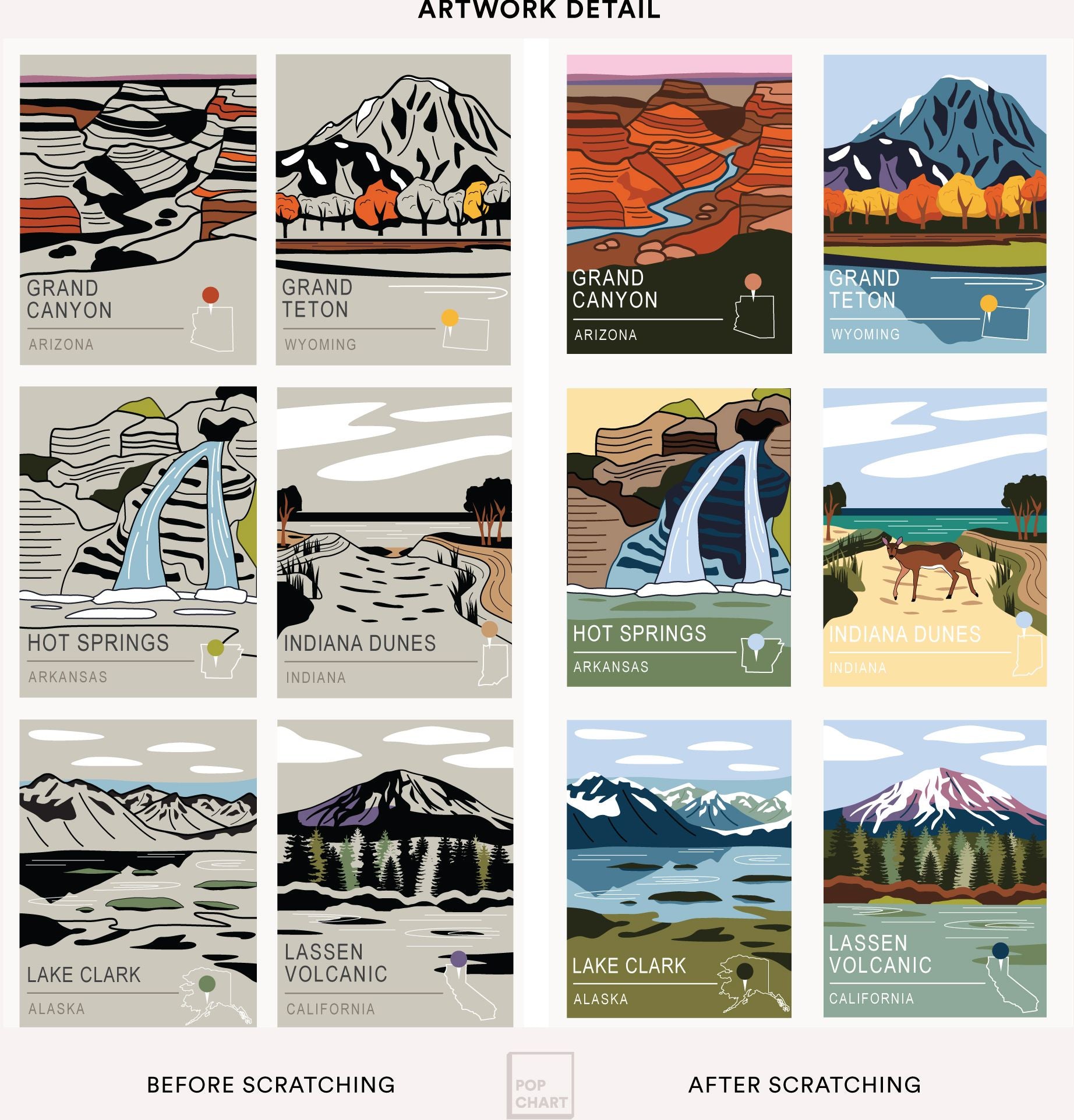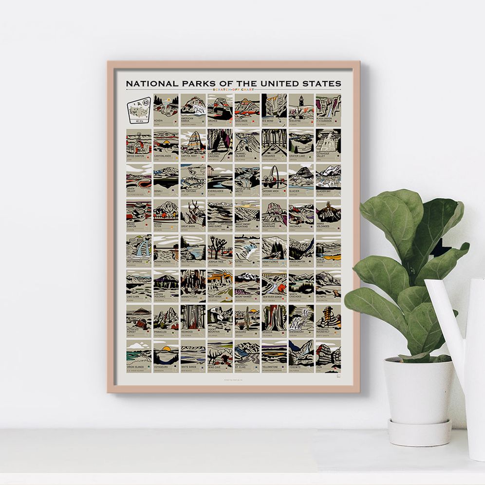 Track your travels to the 63 national parks of the US with this scenic scratch-off chart! Gently scratch the top layer off any site you’ve visited both to commemorate your journey and unveil a full-color vista underneath.