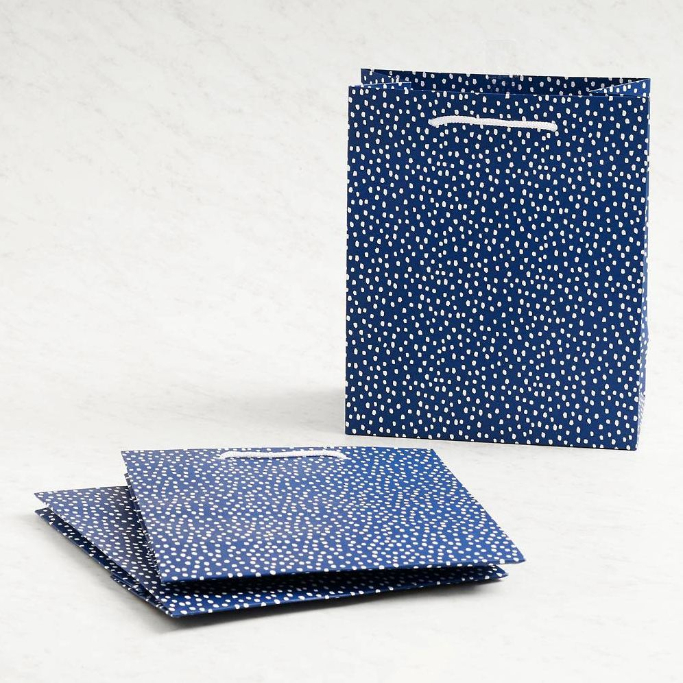 Make sure your thoughtful gift is beautifully wrapped by choosing a stylish gift bag. Navy bag features a fun white polka-dot design. Embellish with ribbons and bows and you have a stunning gift. Includes a sturdy white cord handle.