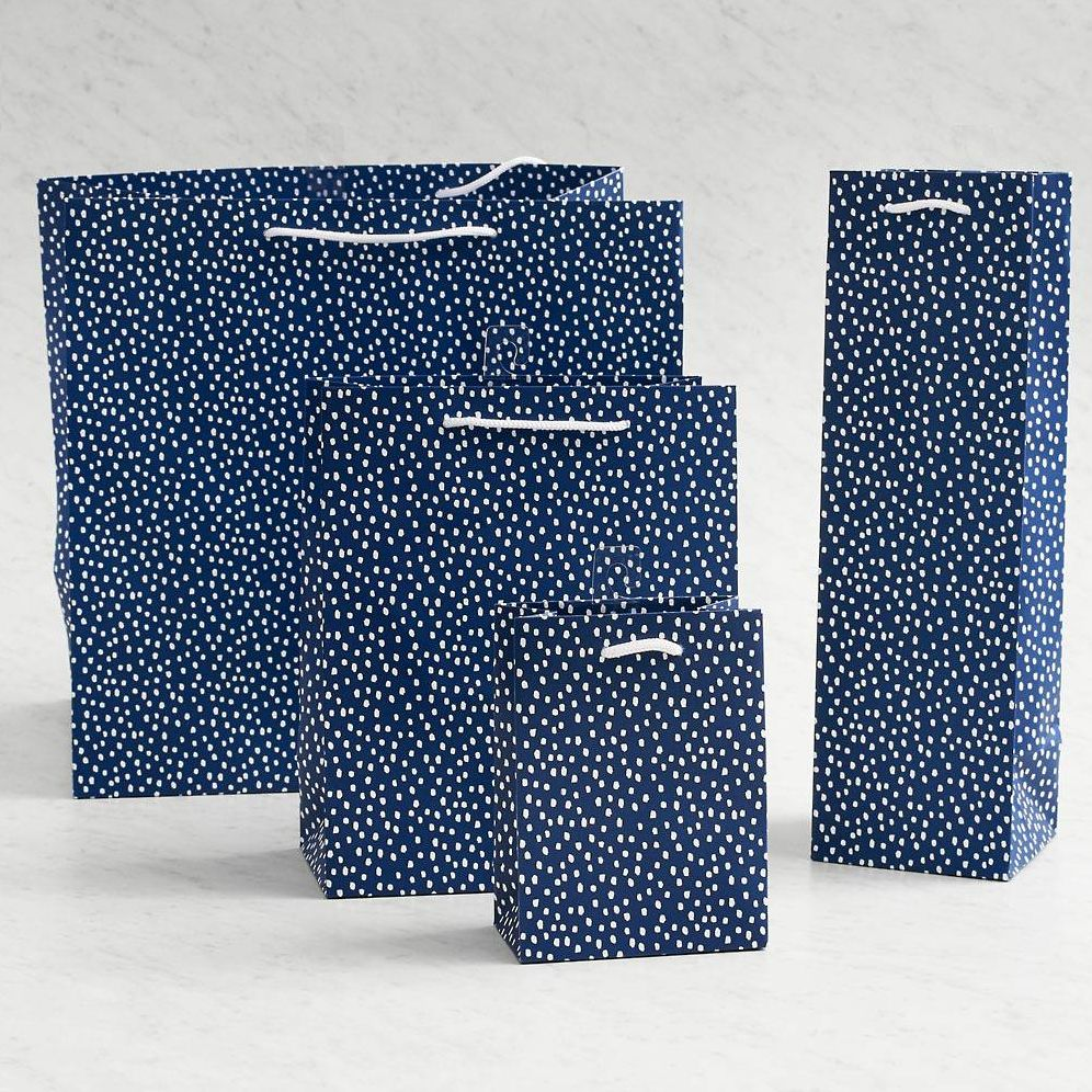 Make sure your thoughtful gift is beautifully wrapped by choosing a stylish gift bag. Navy bag features a fun white polka-dot design. Includes a sturdy white cord handle.