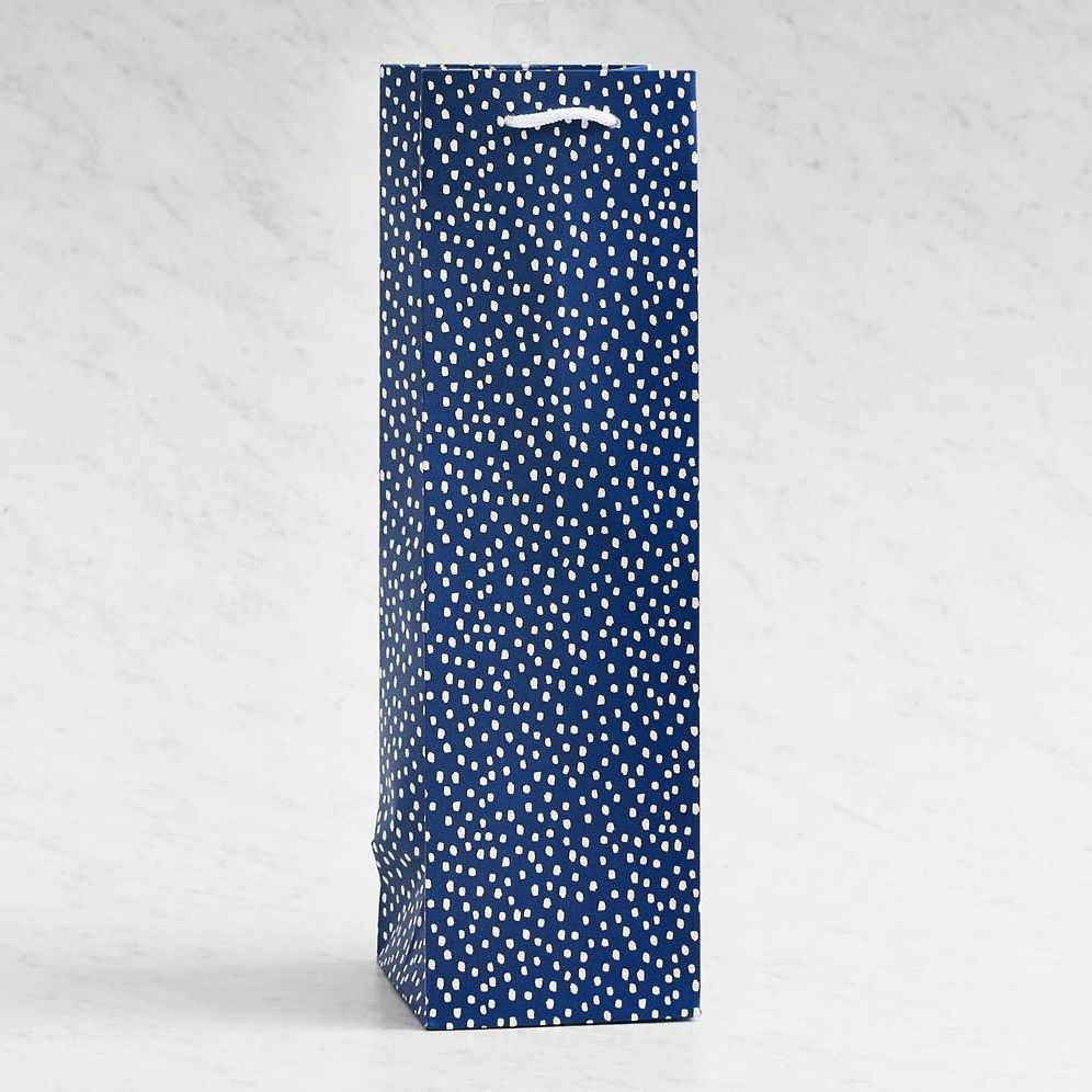 Make sure your thoughtful gift is beautifully wrapped by choosing a stylish gift bag. Navy bag features a fun white polka-dot design. Includes a sturdy white cord handle.