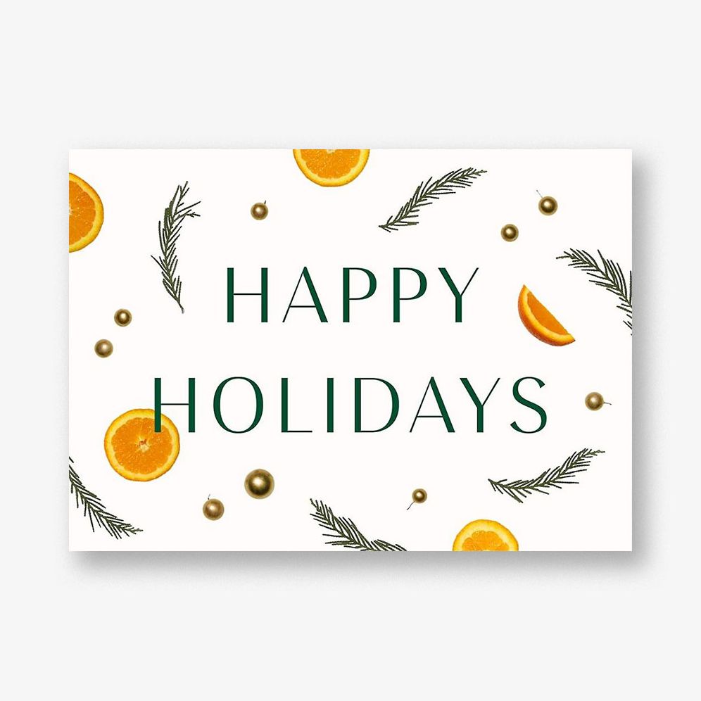 Spread the fruits of your holiday cheer with this colorful orange holiday card.