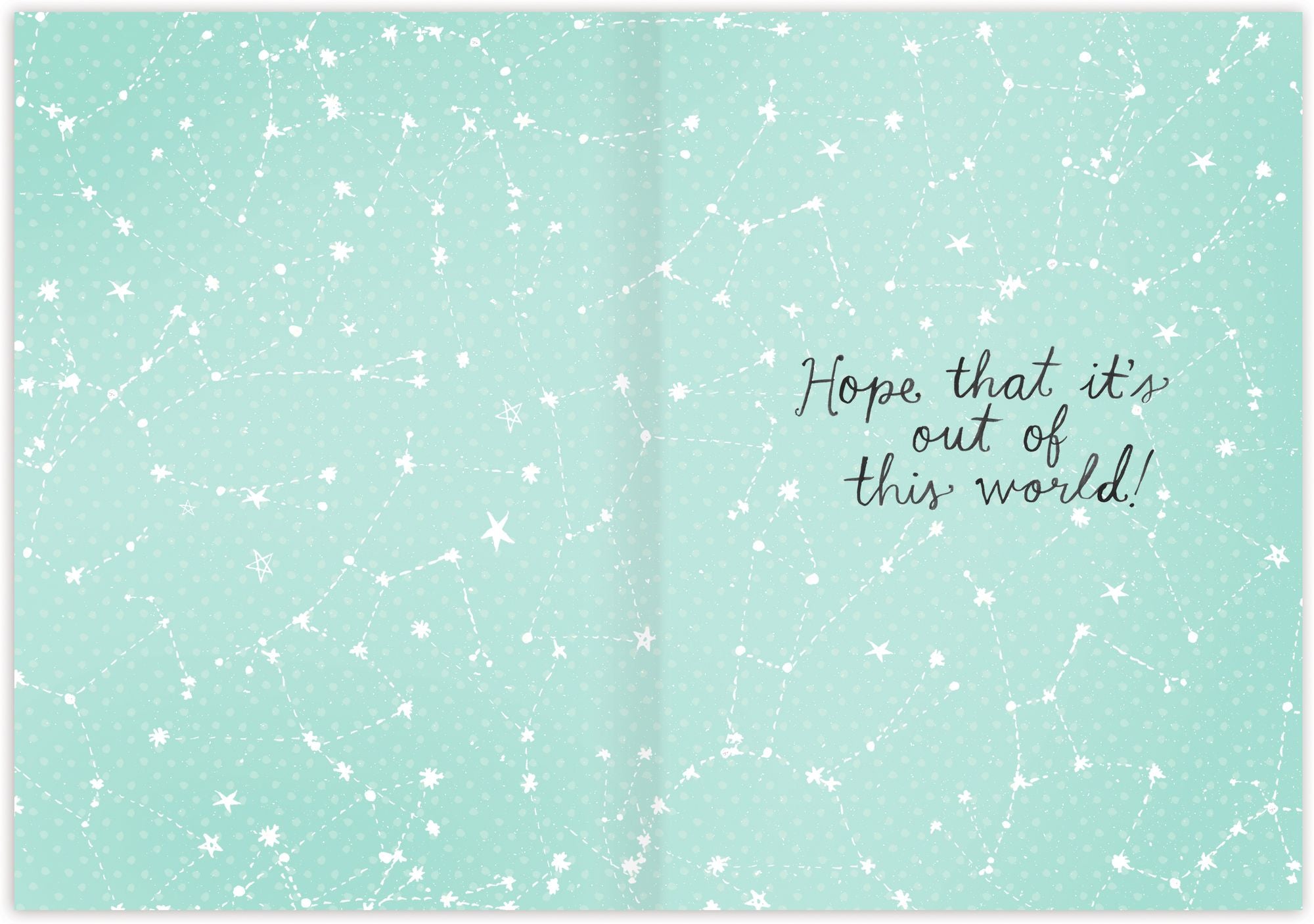 Birthday card by Katie Daisy. Outside caption happy birthday. Inside caption Hope that it’s out of this world!