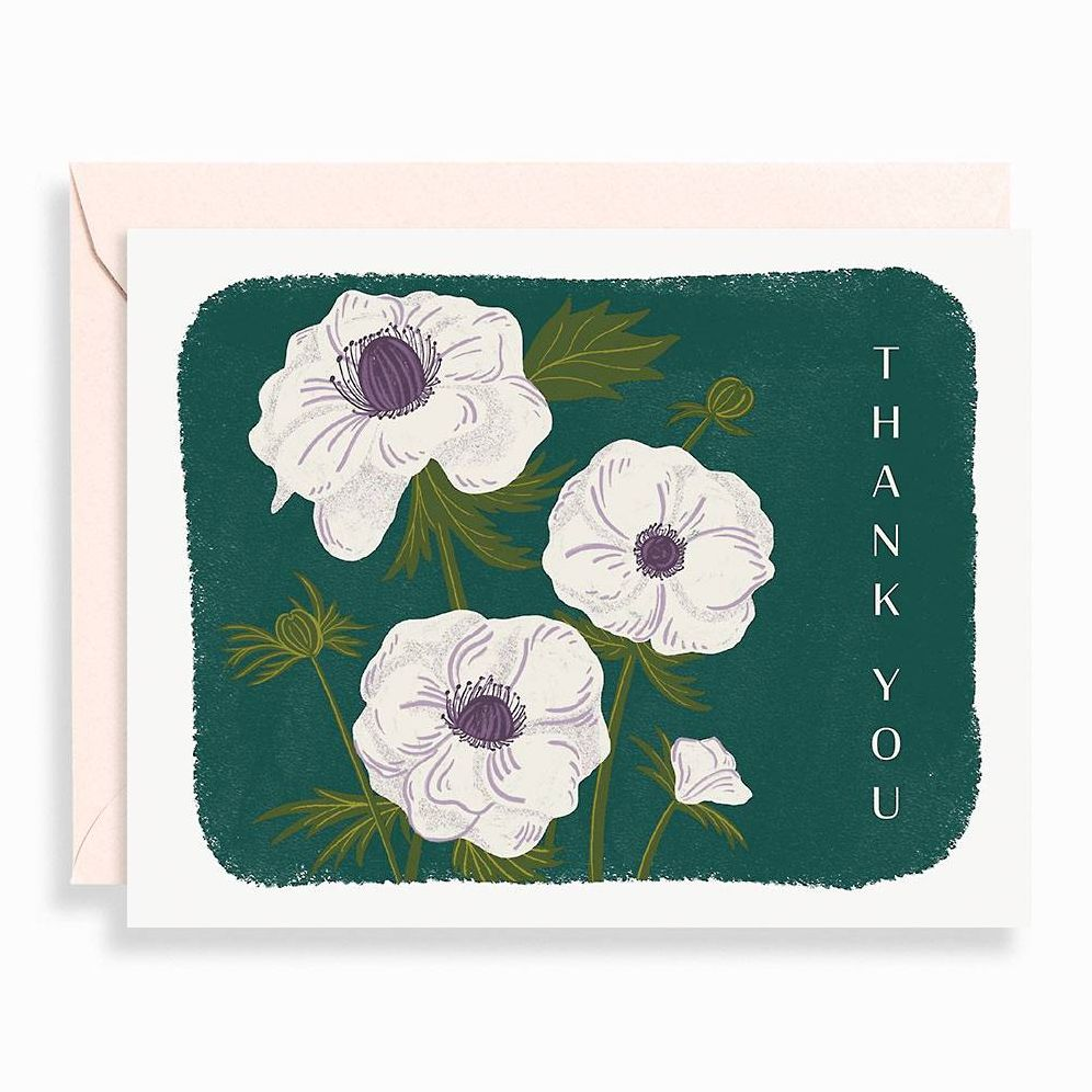 Folded thank you cards in painted floral designs. Blank inside. Set of 12. with four of each design. Comes with envelopes. color may vary.