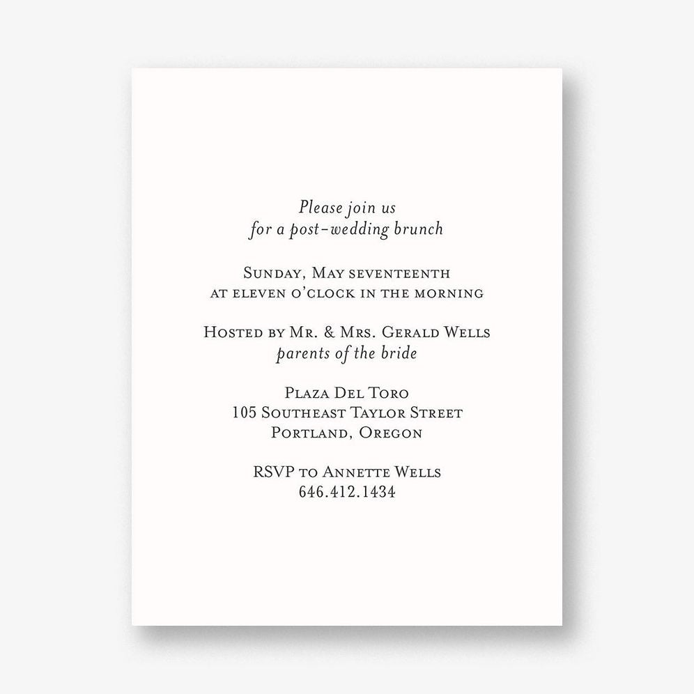This simple information card complements the rest of the Painted Magnolia suite of wedding cards. Printed on Mohawk superfine white 130 lb. card stock that is soft to the touch and matches our superfine white envelopes. Paper is FSC certified and made using wind power.