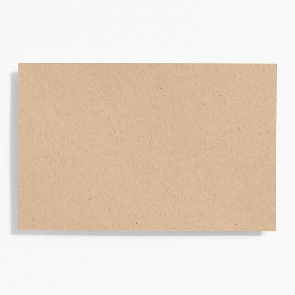 Our flat card in cover weight that fits an A9 envelope. perfect for a unique invitation or party menu. Environmentally friendly. Paper Bag is made from 30% post-consumer waste and has a natural khaki color. Due to the recycled content. please note that each piece is unique and may vary slightly in color or texture.