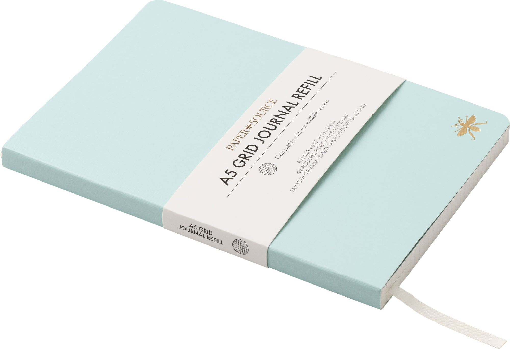 To refill your Paper Source Journal cover. simply fold the cover back. and insert the refill into the cover. Available in Lined. Dotted. Gridded. and Undated internals.