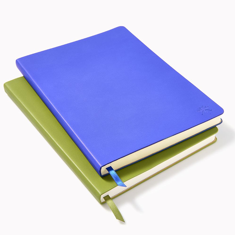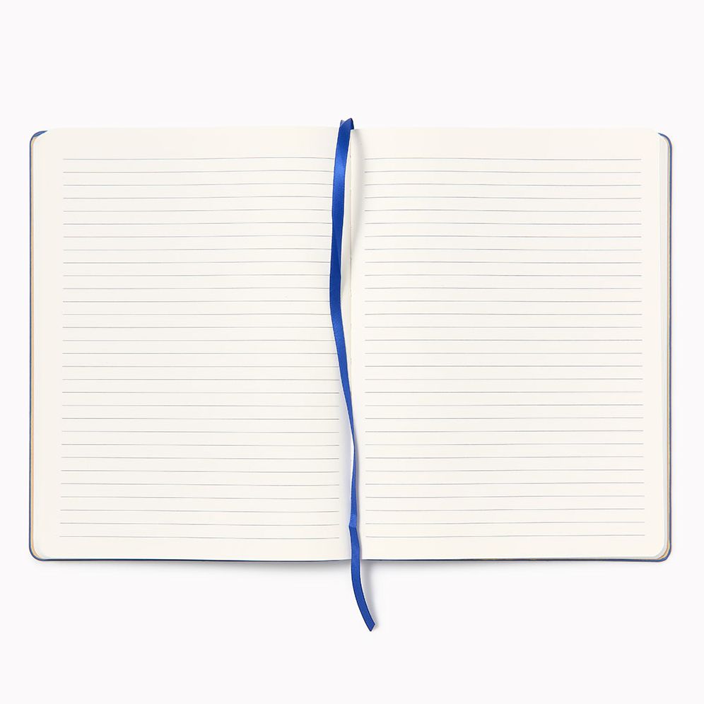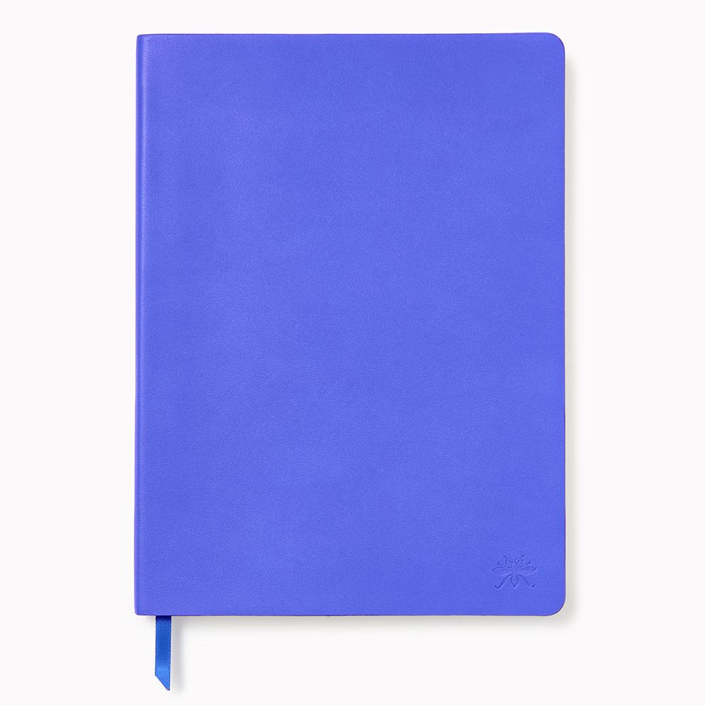 Our signature large journal. now in a bright and bold blue. Features lined interior pages and a ribbon bookmark. along with an embossed logo on the front cover. Measures 9.5 x 7 inches. Designed by Paper Source