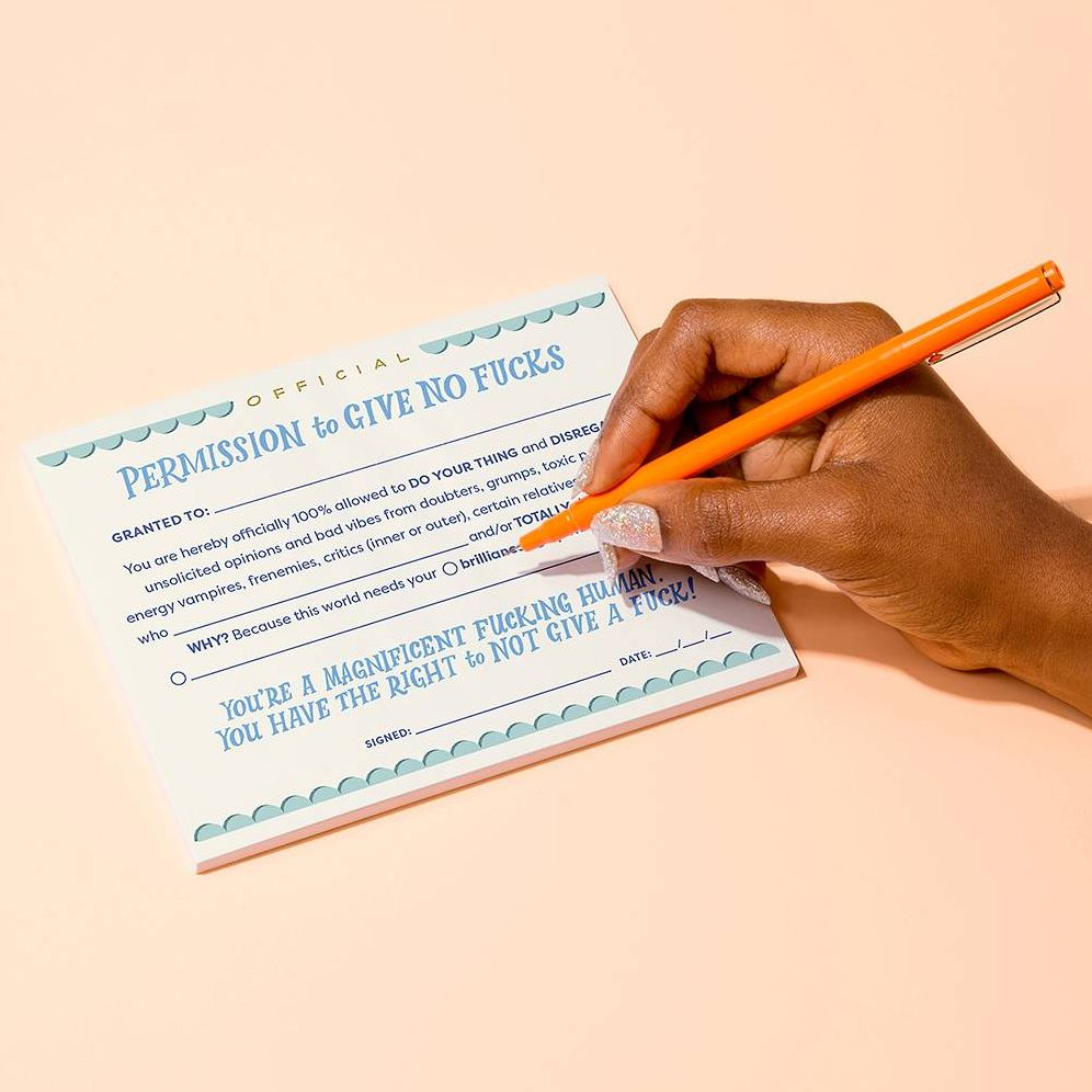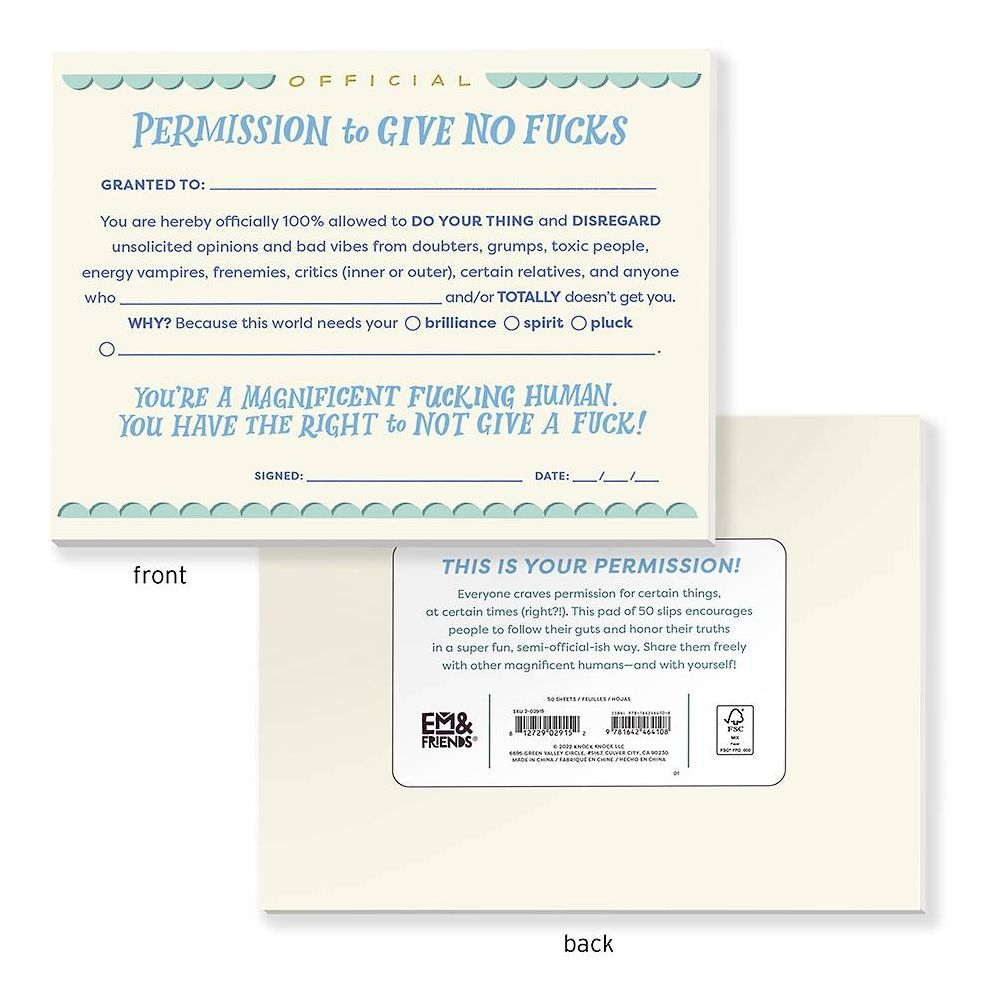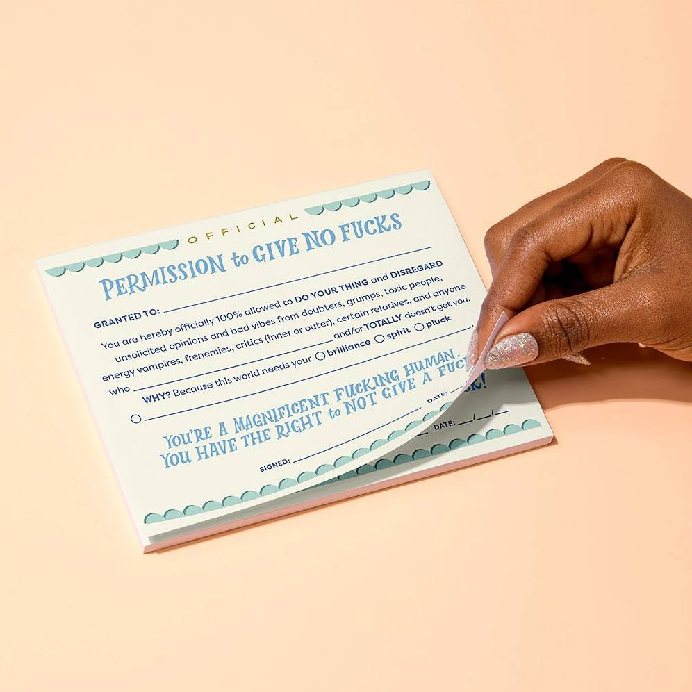 Everyone craves permission for certain things. at certain times (right?!). This pad of 50 slips encourages people to follow their guts and honor their truths??in a super fun. semi-official-ish way. They’re great for sticking on fridges. mirrors. bulletin boards ??? wherever lols and actual inspiration are needed! Share ’em freely with other magnificent humans??and with yourself. This is your official permission.????