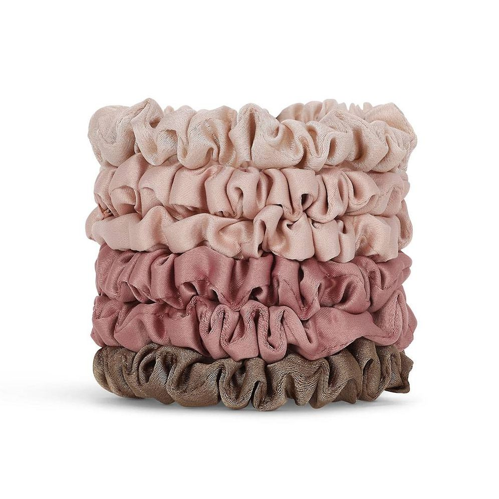 This ’90s fave is crafted with eco-friendly satin. making them gentle on your strands while helping to reduce damage and breakage when you throw your hair up. Plus. there’s no more creasing. thanks to the soft material! The slim. ruched design looks delicate and sleek for any occasion while keeping your hair under wraps (it also looks super-cute worn on your wrist!). Comes in a pack of 6 chic neutral tones that are ideal to grab. go. and match with any outfit. By Kitsch.