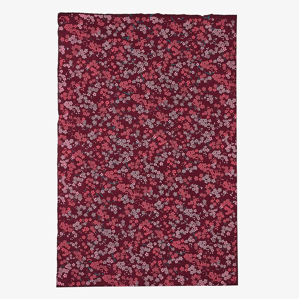 This beautiful and intricate floral design is printed on a rich magenta Lokta fine paper. The renewable Lokta plant’s long fibers are remarkably strong. giving Lokta paper its durability. supple feel and beautiful aesthetic. These qualities make this lovely fine paper suitable for bookbinding. gift wrapping. or card making. And because the Lokta plant is renewable. these handmade papers are truly a green choice.
