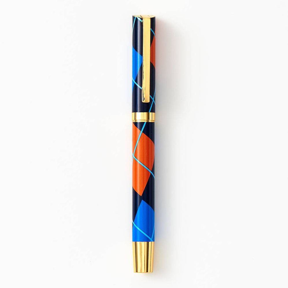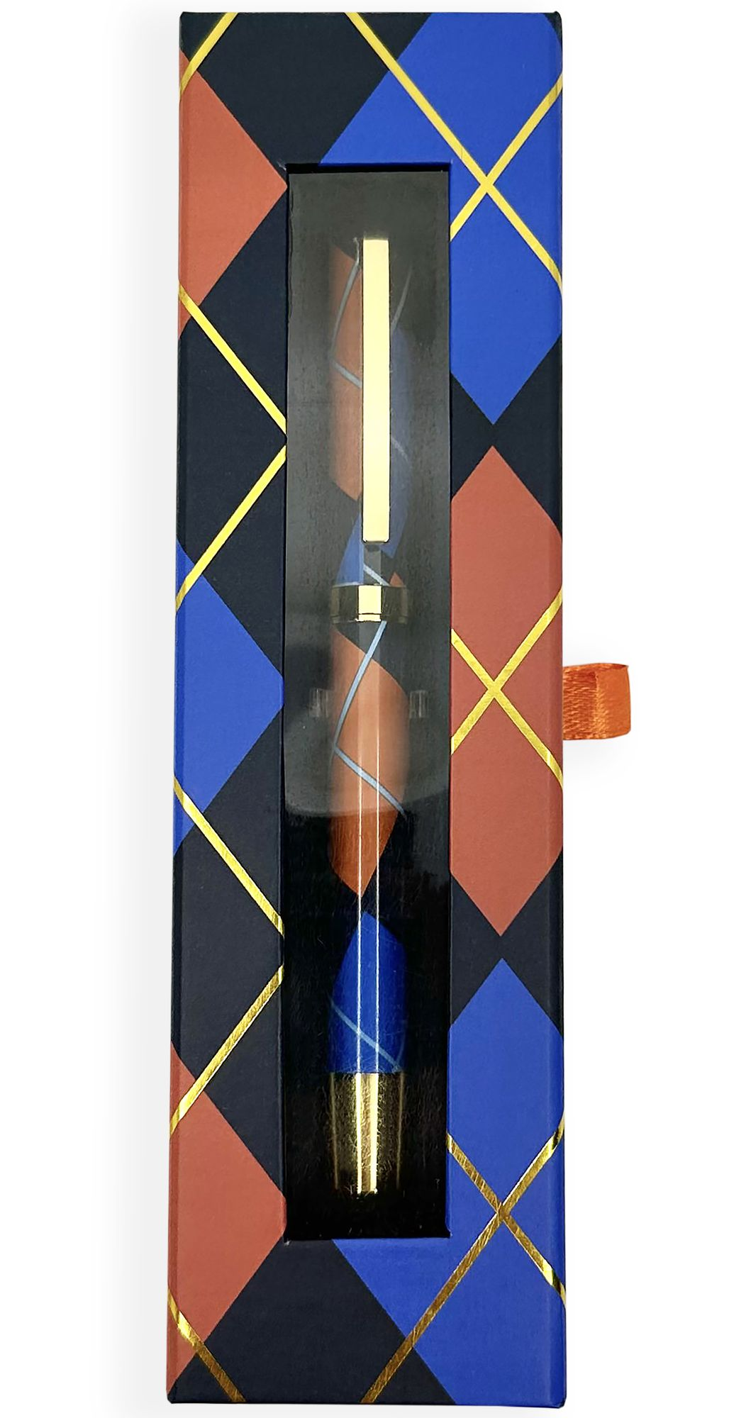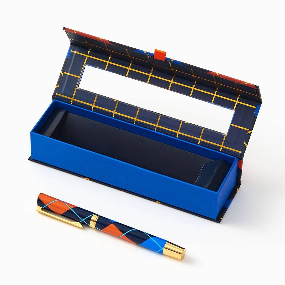 Metal ball point pen in plaid gift box.