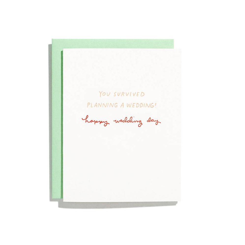 This is a cheeky card to congratulate newly weds! You survived a planning a wedding! Happy Wedding Day.